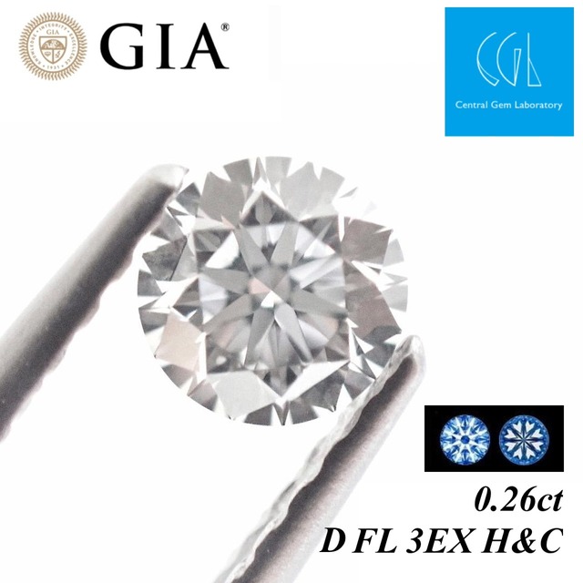 【最上級】0.26ct D FL 3EX HC ラウンド ダイヤモンド ルース 裸石 天然 無傷 無色 透明 稀少 希少石 ダイアモンド 中央宝石研究所 GIA ラウンドブリリアントダイヤモンド 婚約指輪 0.2カラット フローレス 0.2 carat Natural Diamond D Flawless 3EX H&C Round Brilliant