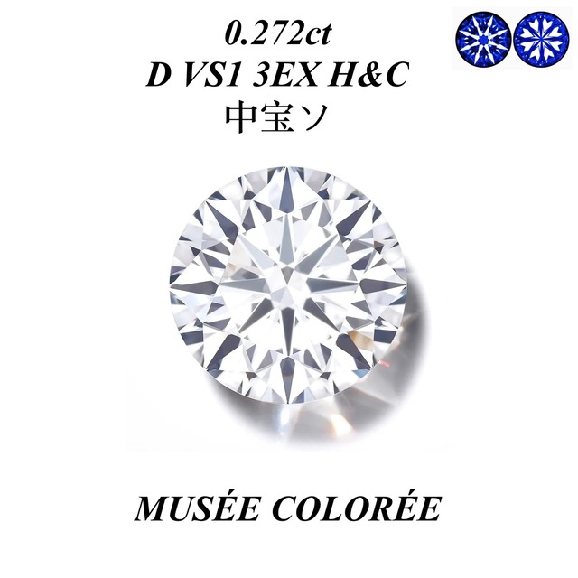 【卸売価格】0.272ct D VS1 3EX H&C 然 ダイヤモンド 無傷 無色 透明 稀少 希少石 ダイアモンド 中央宝石研究所 ラウンドブリリアントダイヤモンド 婚約指輪 4.1mm 0.2ct 0.2 ct 0.2カラット Natural Diamond Round Brilliant