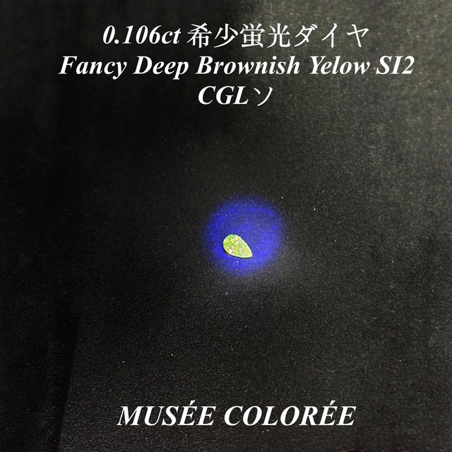 【蛍光】 0.106ct Fancy Deep Brownish Yellow SI2 天然 イエロー ダイヤモンド ルース 裸石 中央宝石研究所ソーティング 蛍光 ペアシェイプ グリーン