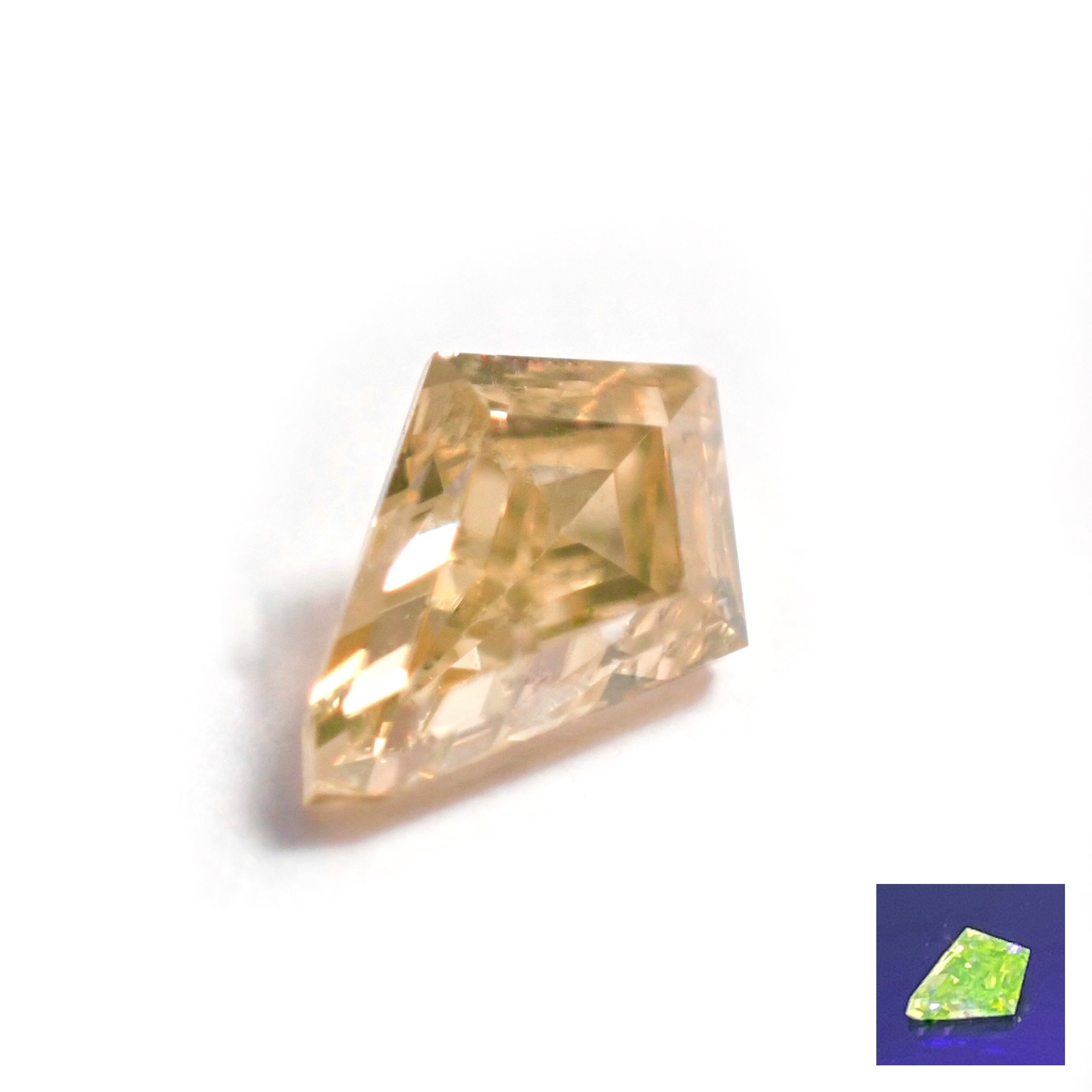 【レア】 Fancy Orangy Yellow 0.228ct ファンシー オレンジ イエロー ダイヤモンド ルース 裸石 中央宝石研究所ソーティング カラーダイヤモンド カイトカット 蛍光 蛍光ダイヤモンド UV ダイヤ 菱形カット Rhombus Cut Diamond Kite Cut