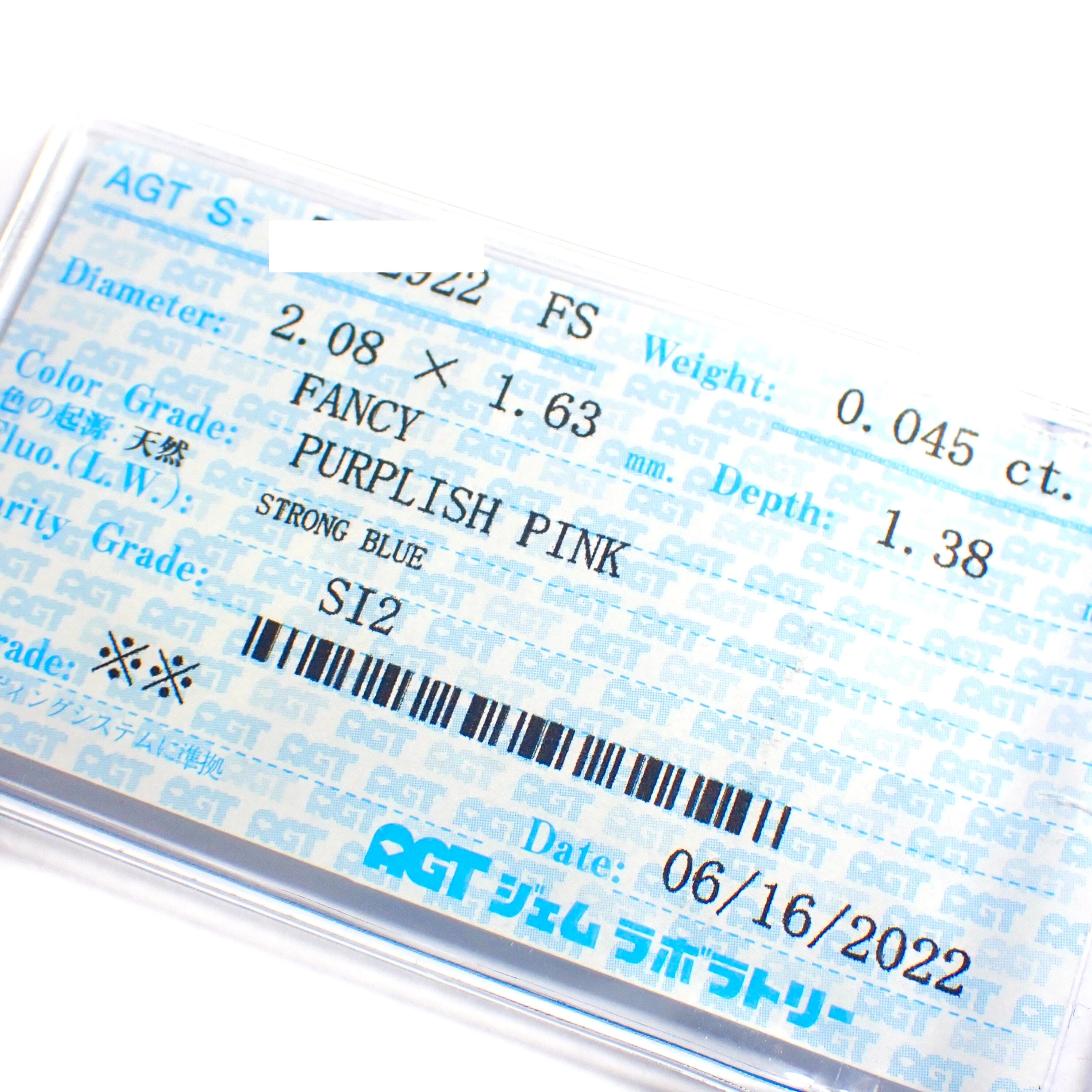 【売切れ御免】 0.045ct Fancy Purplish Pink ピンク ダイヤモンド ルース 裸石 AGTソーティング 天然ピンクダイヤモンド クッションカット Natural Pink Diamond Cushion Cut