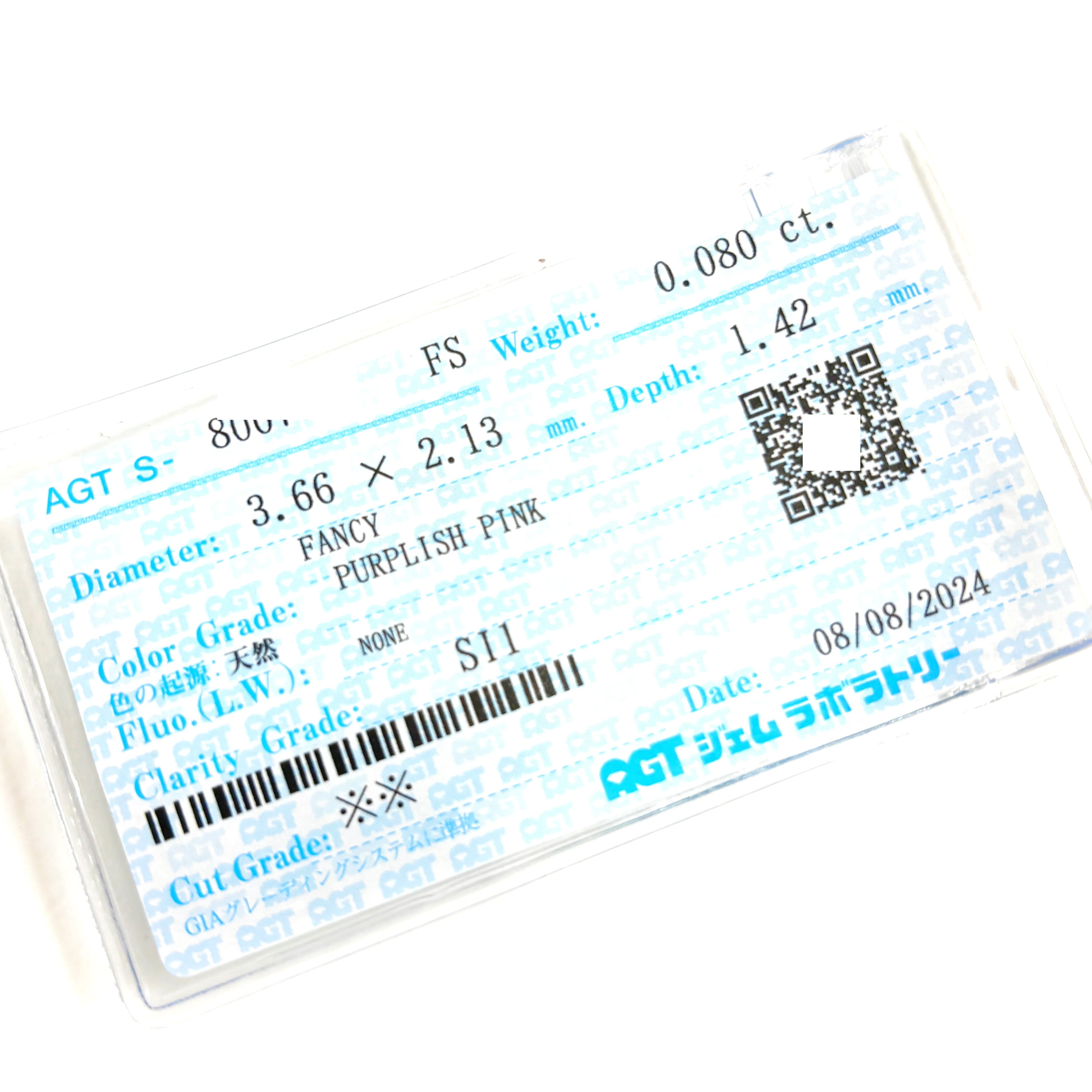 0.080ctのFancy Purplish Pinkです 。