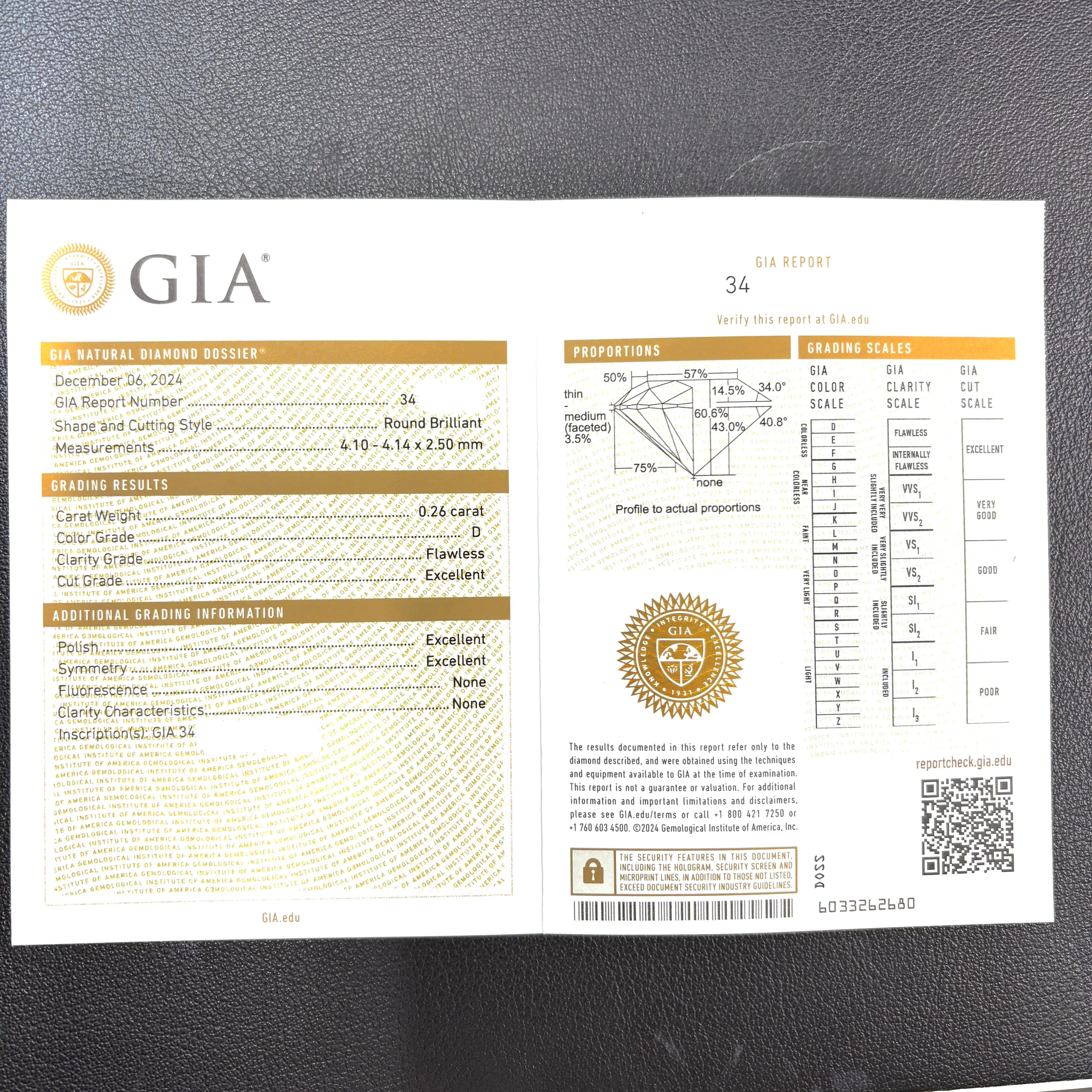 0.26ct 最高等級Dカラー、FLクラリティ、