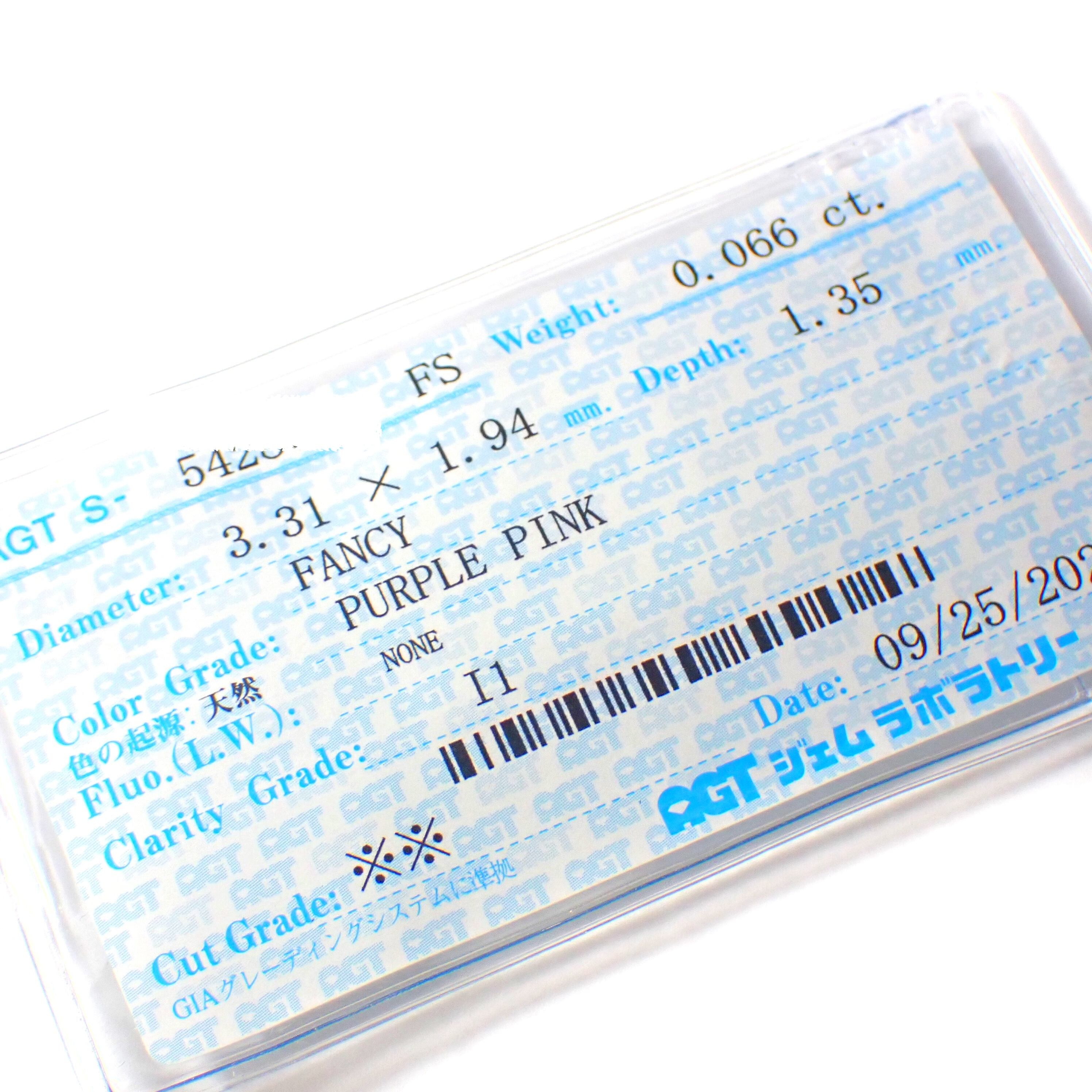 【特別価格】 Fancy Purple Pink 0.066ct ファンシー パープル ピンク ダイヤモンド ルース 裸石 AGTソーティング 天然 ピンクダイヤ ペアシェイプ Natural Pink Diamond Pear Shape