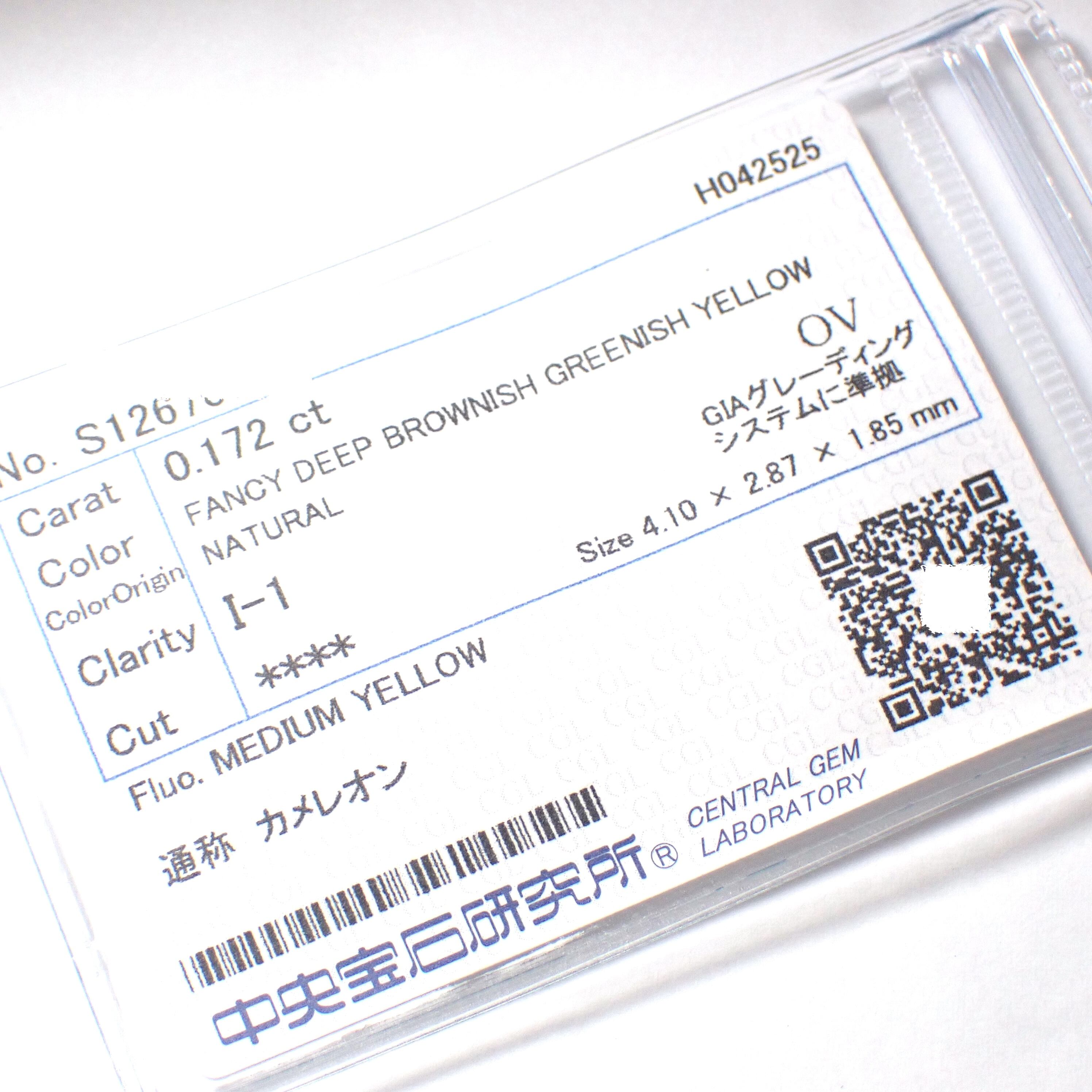 【目玉品】 0.172ct Fancy Deep Brownish Greenish Yellow カメレオン ダイヤモンド グリーン ダイヤモンド ルース 裸石 天然 中央宝石研究所ソーティング ダイヤモンド Chameleon