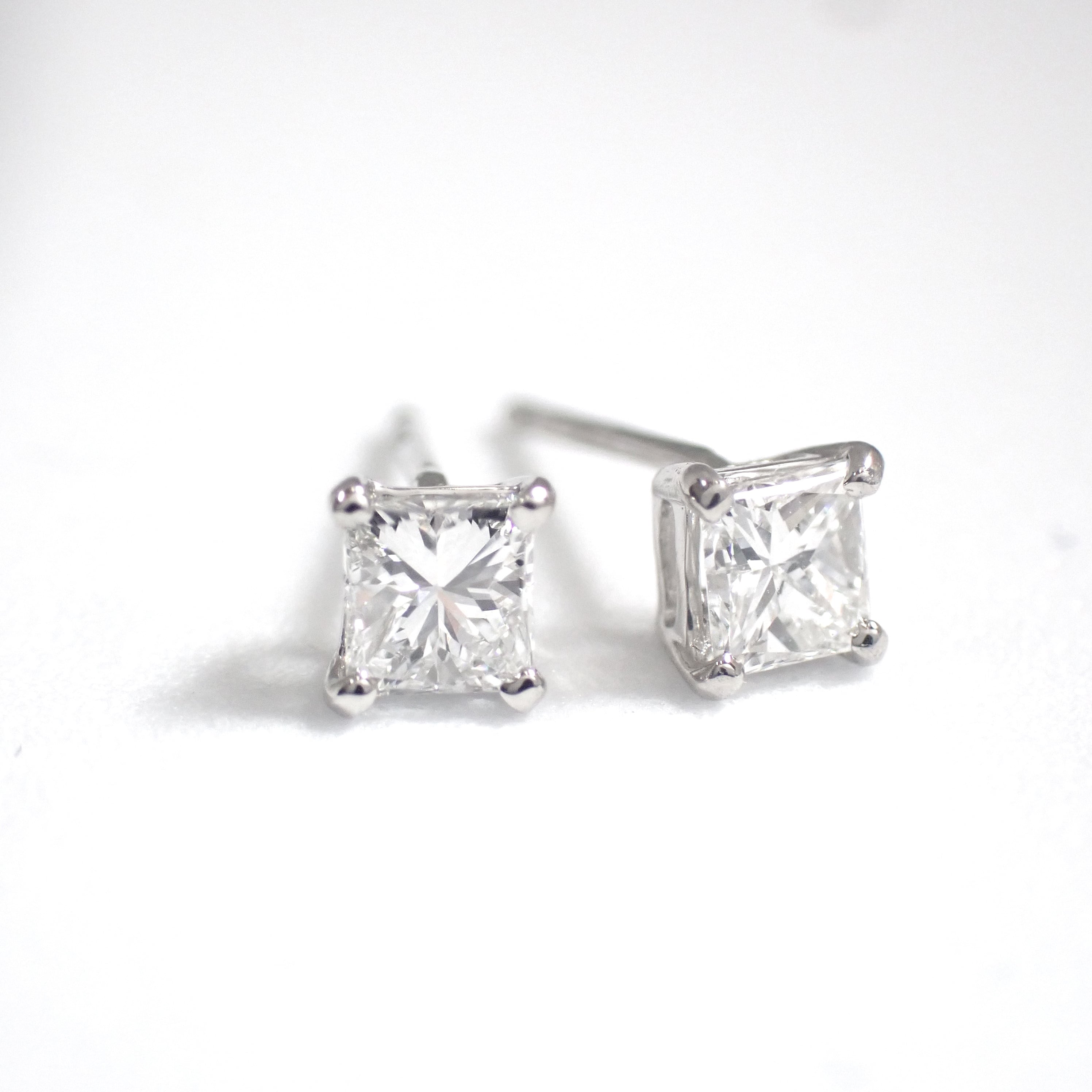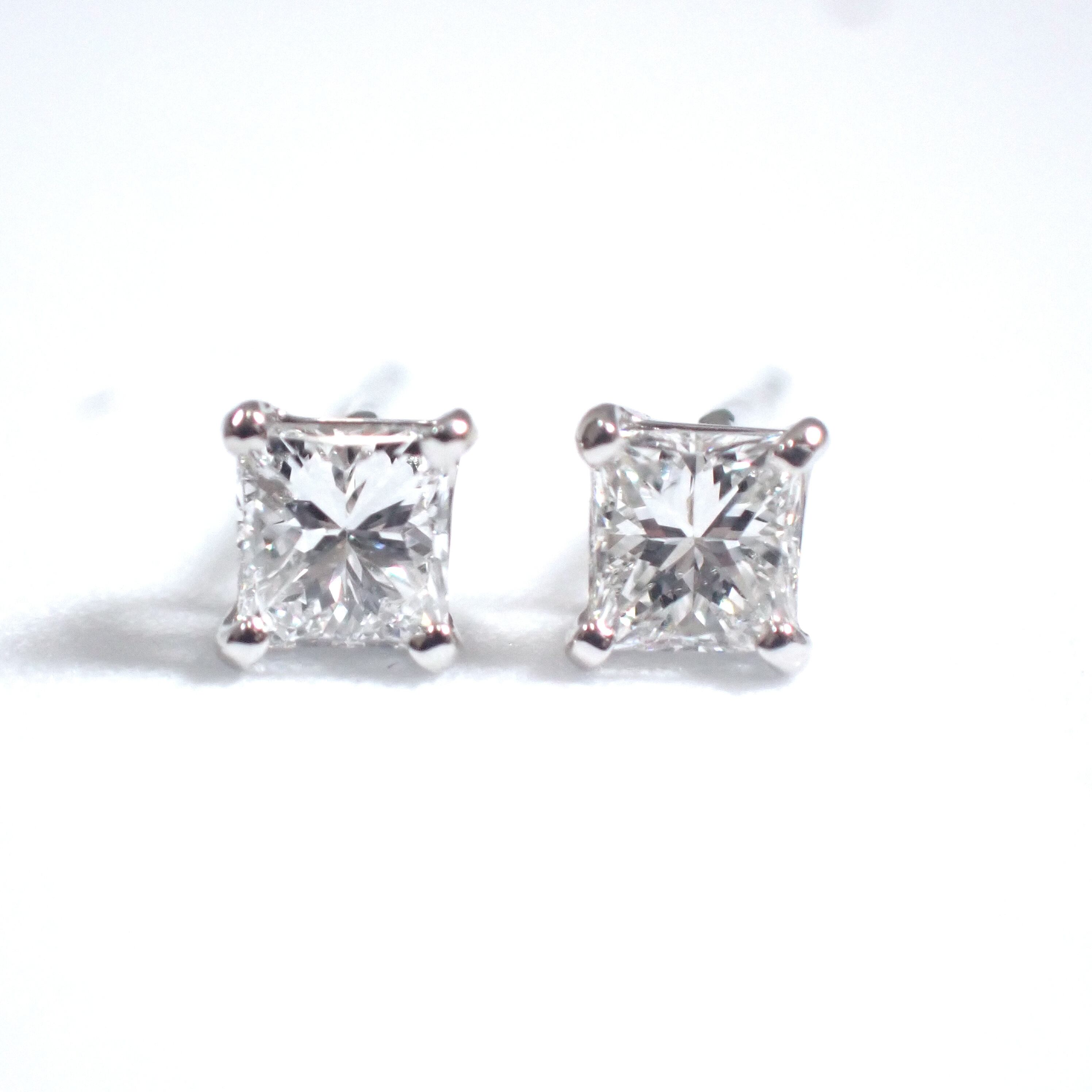 こちらは プリンセスカットダイヤモンドピアスのペア、