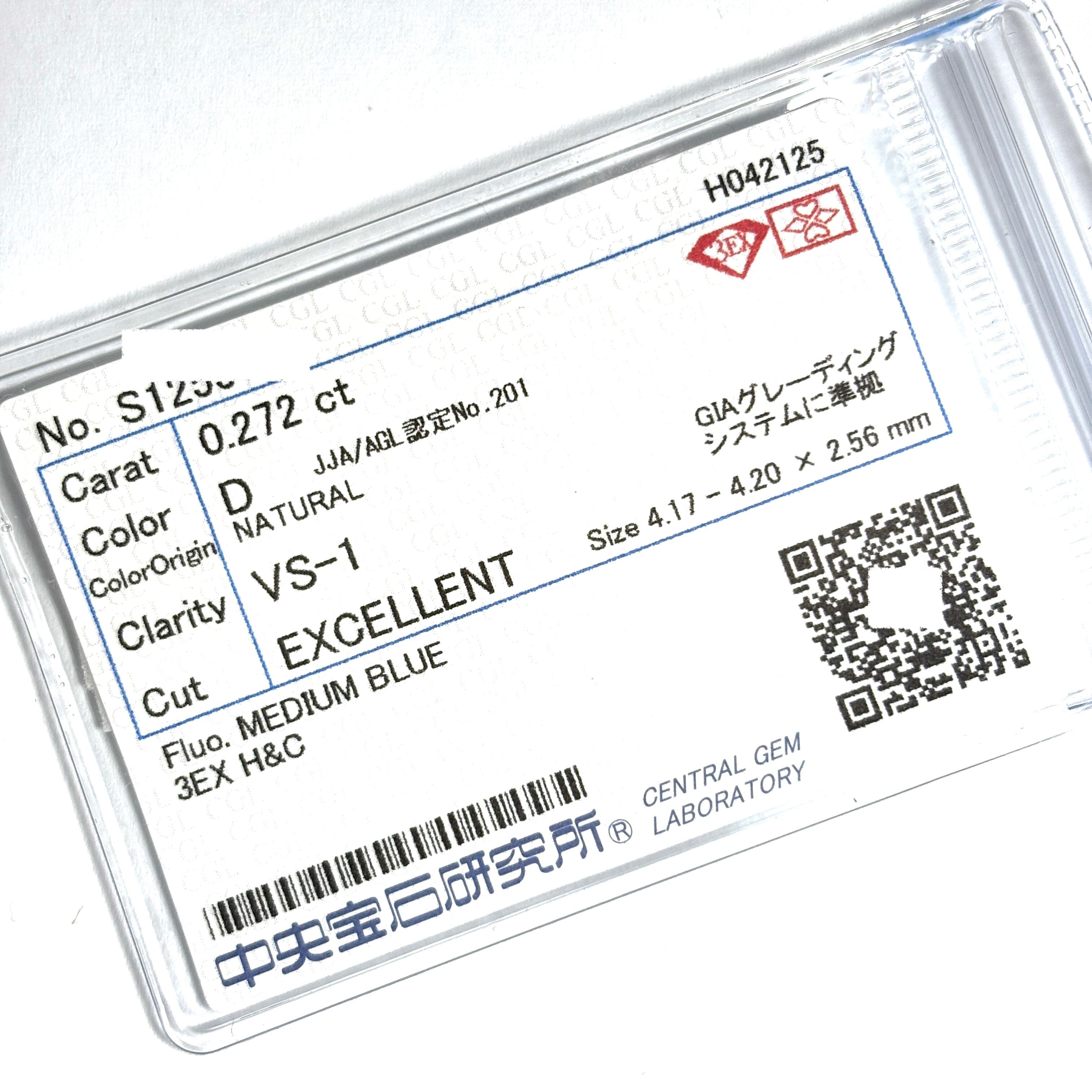 【卸売価格】0.272ct D VS1 3EX H&C 然 ダイヤモンド 無傷 無色 透明 稀少 希少石 ダイアモンド 中央宝石研究所 ラウンドブリリアントダイヤモンド 婚約指輪 4.1mm 0.2ct 0.2 ct 0.2カラット Natural Diamond Round Brilliant