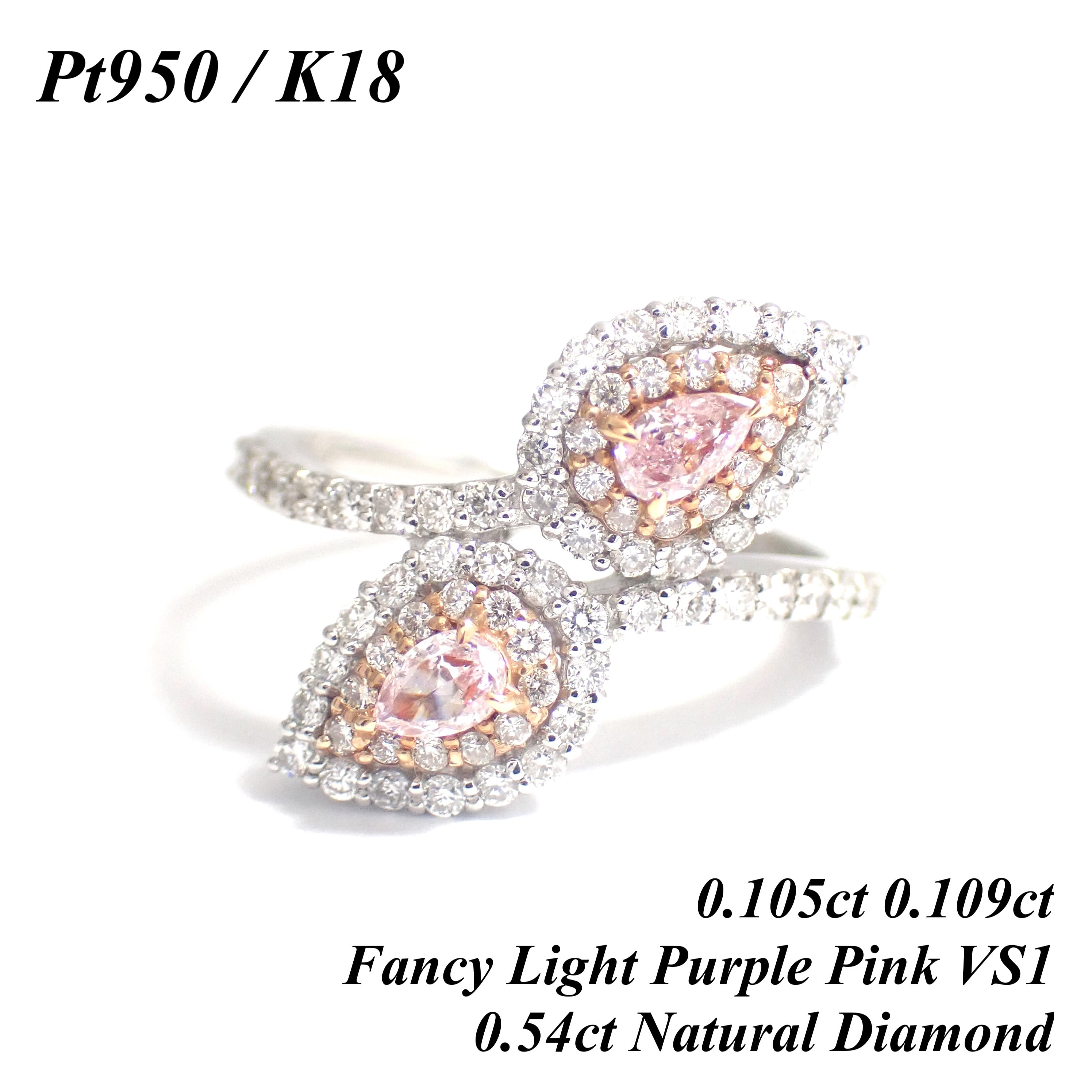 【新品 日本製】Pt950 プラチナ K18 0.214ct ピンク ダイヤモンド リング 指輪 0.54ct 天然 AGT 鑑定書 Pink Diamond Ring