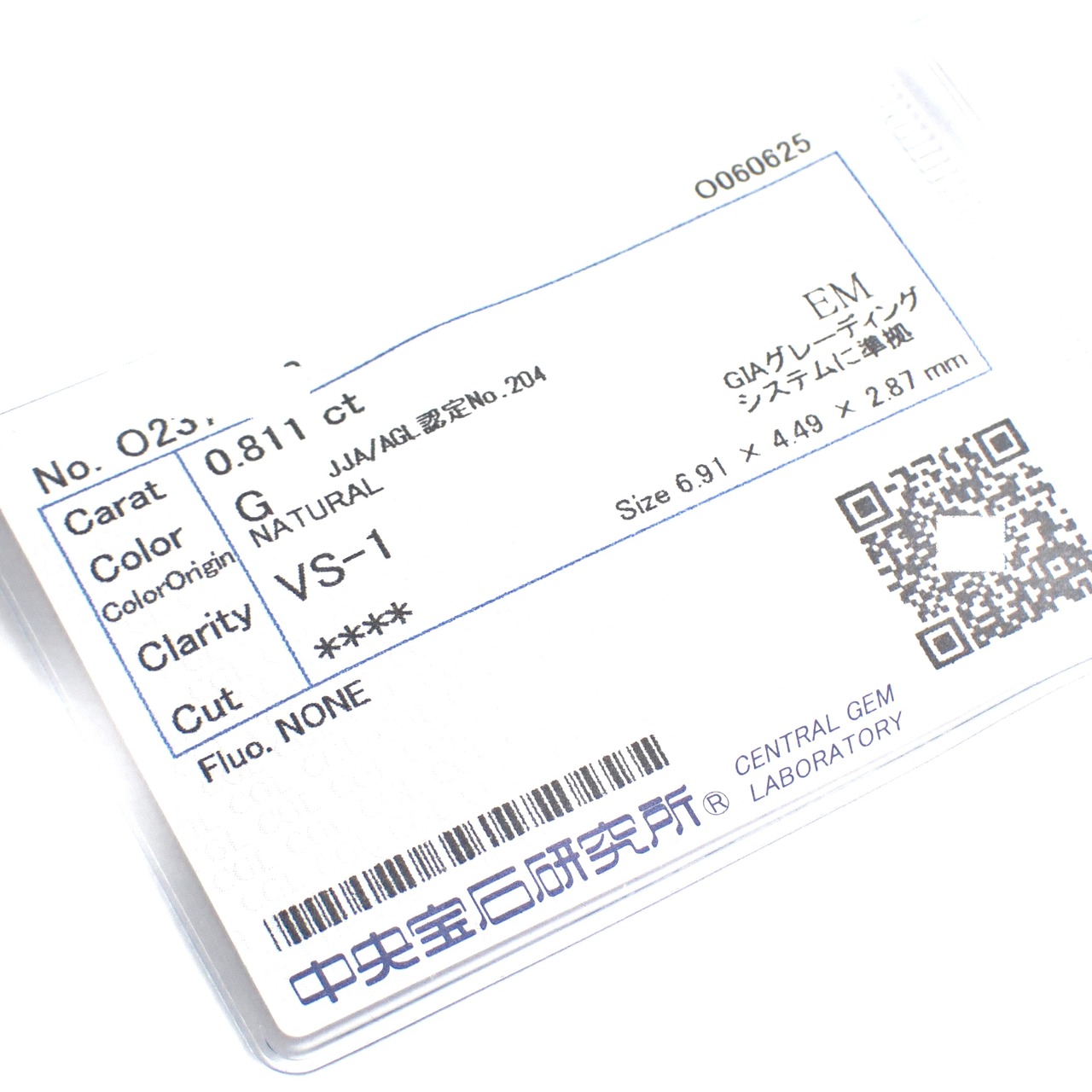 【卸売価格】 0.811ct G VS1 エメラルドカット ダイヤモンド ルース 裸石 中央宝石研究所ソーティング ダイヤ リング 指輪 ネックレス 0.8ct Emerald Cut Diamond