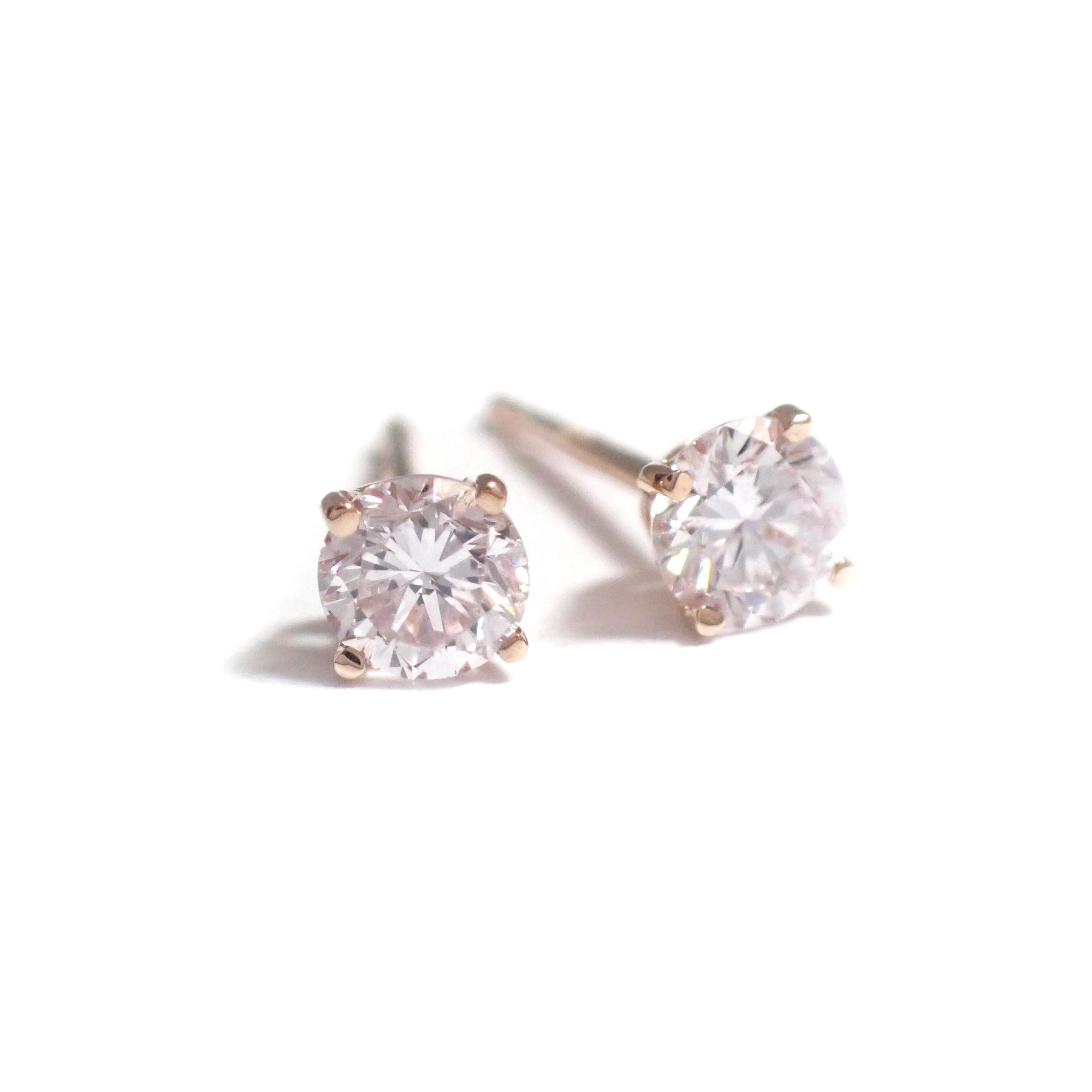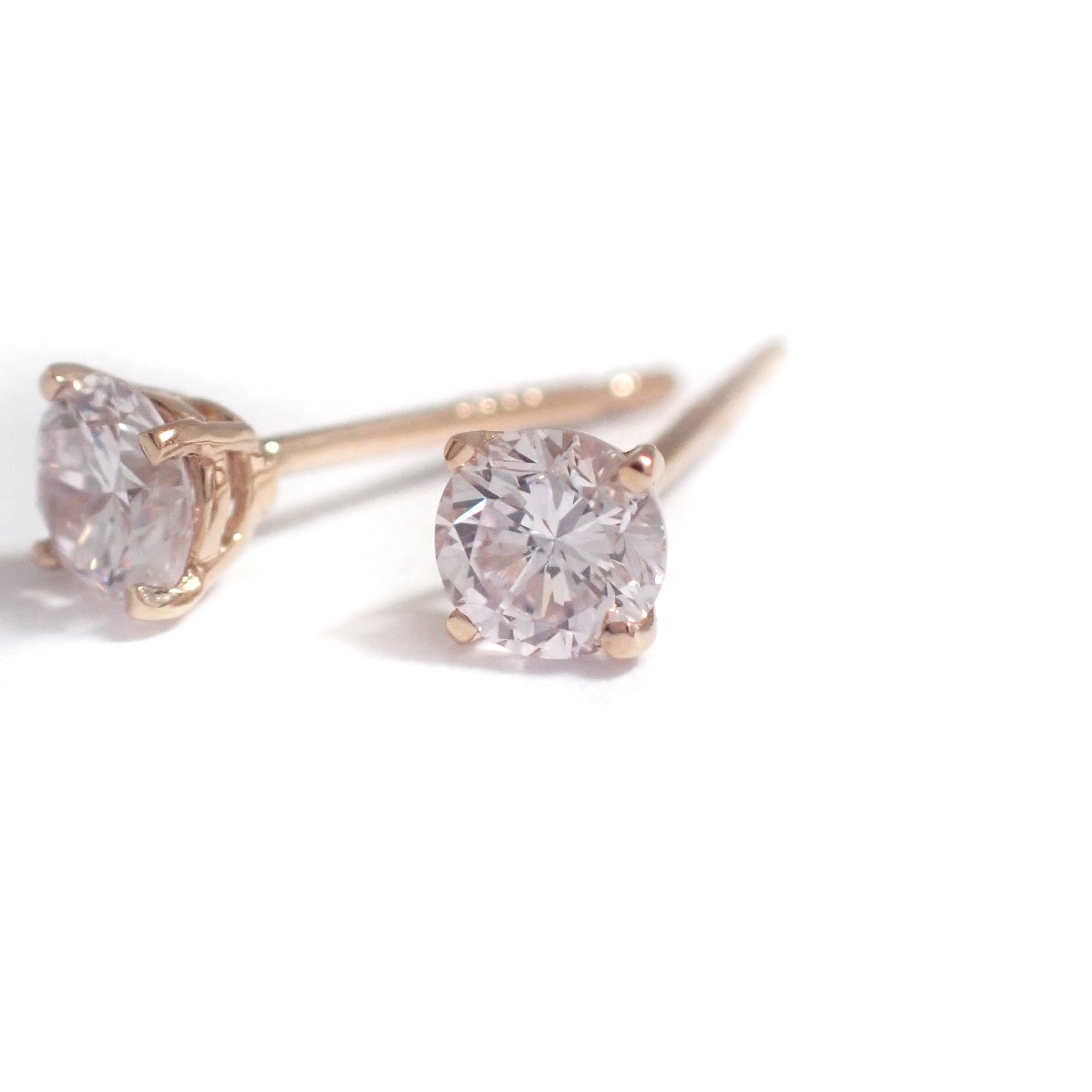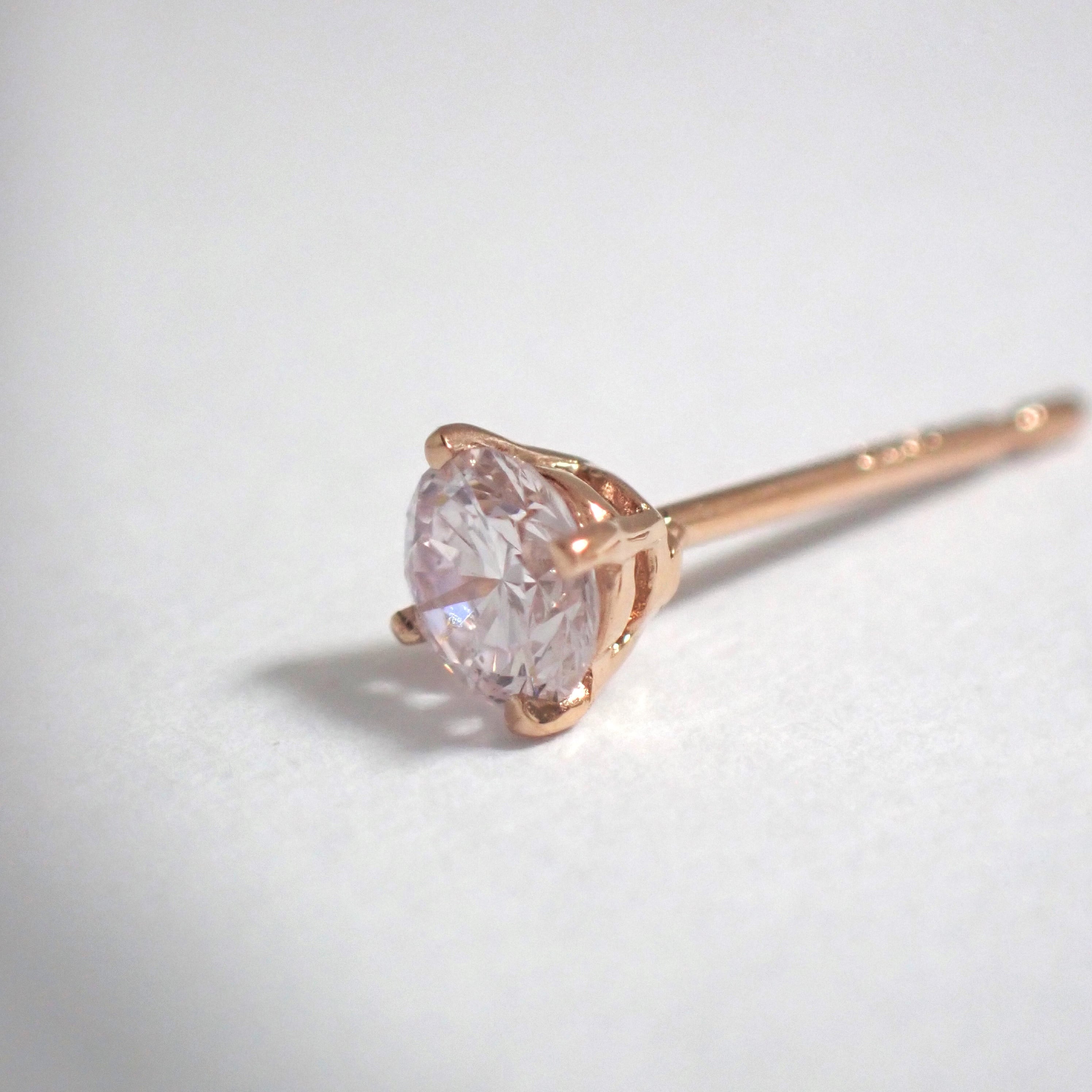 【新品 日本製】 K18PG ピンクゴールド 金 0.313ct Very Light Purplish Pink VS2 天然 ピンク ダイヤモンド ダイヤ ピアス 天然 ダイヤモンド 中央宝石研究所ソーティング CGLソーティング ピンクダイヤ Pink Diamond Earrings Studs in Solid 18K Handcrafted in Japan
