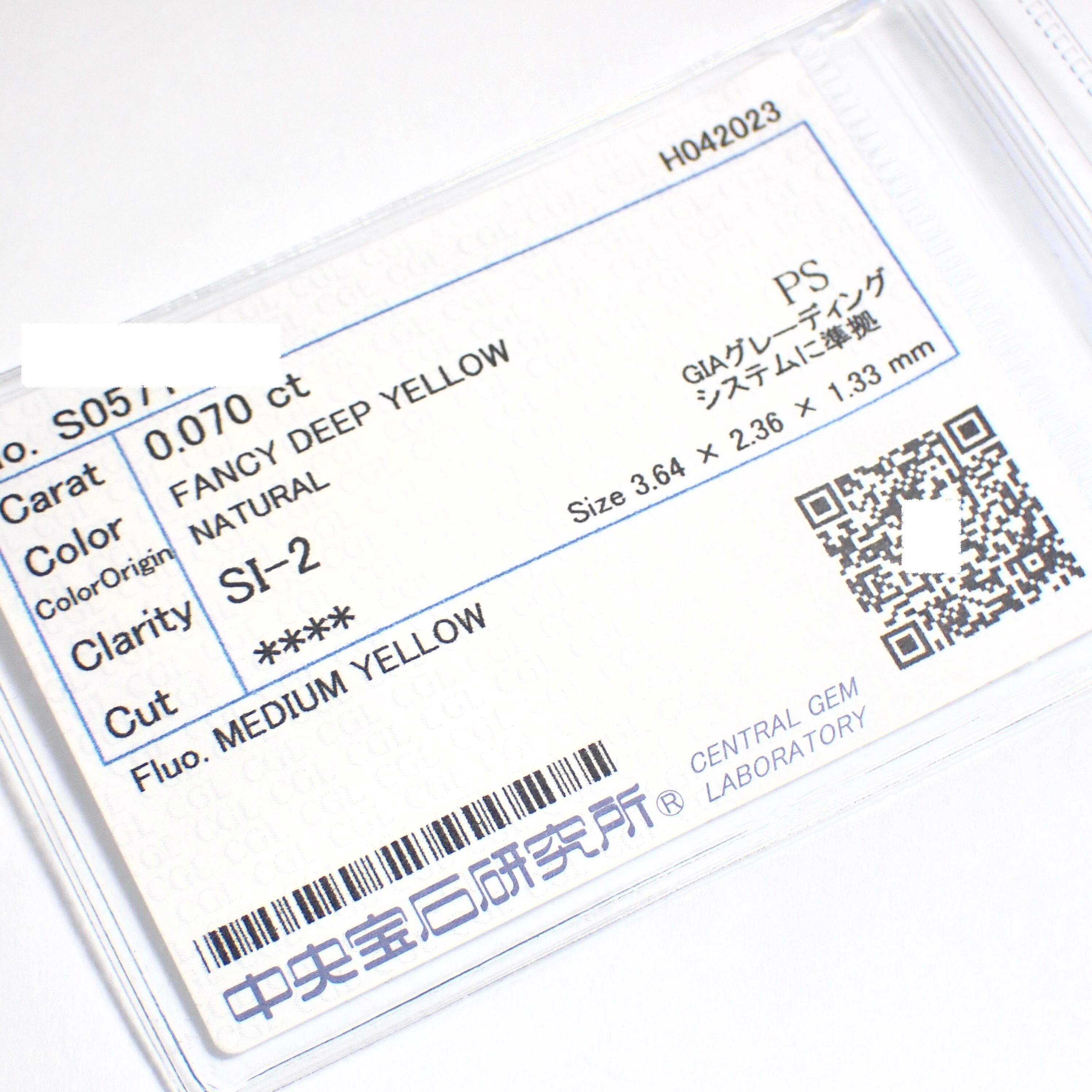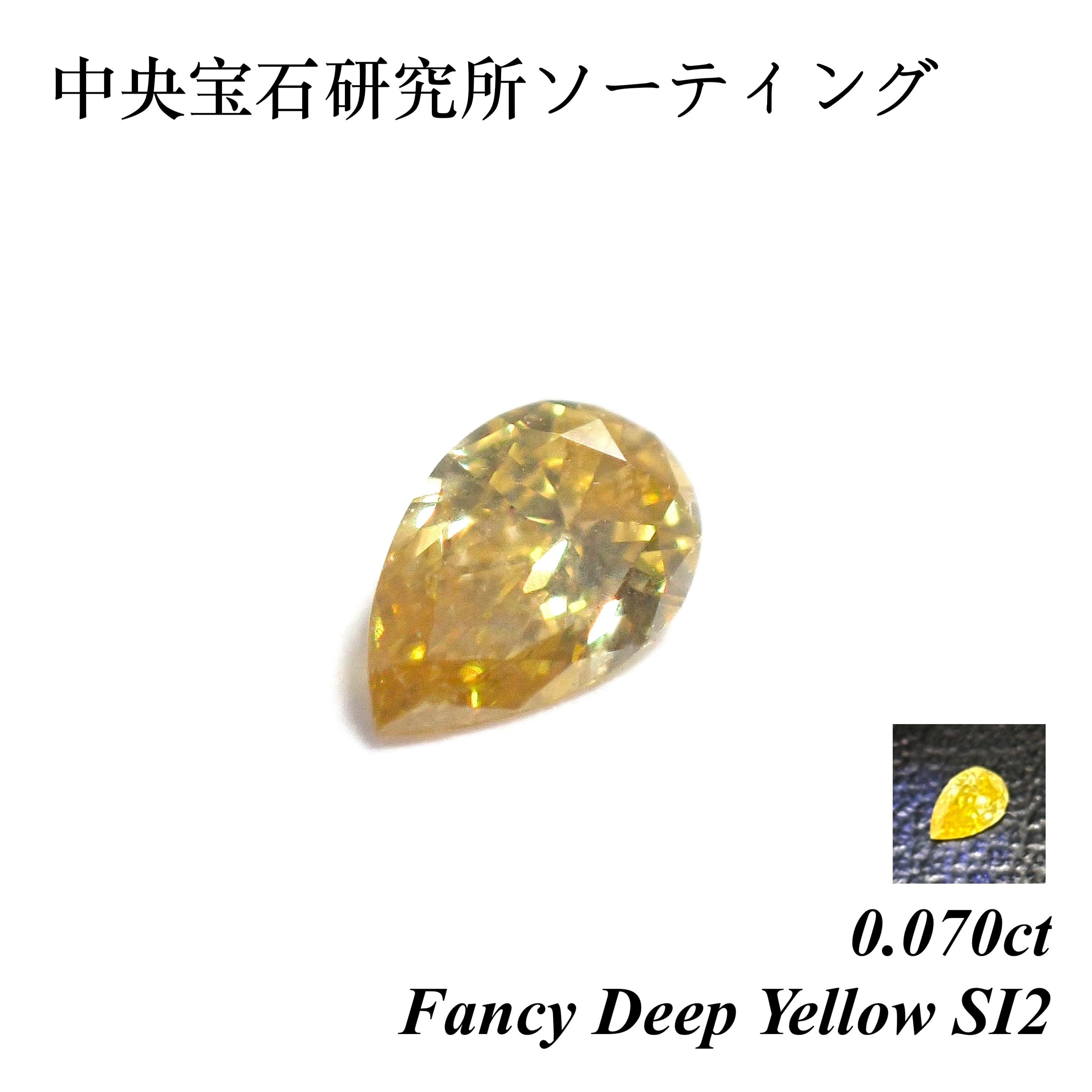 【蛍光】 0.070ct Fancy Deep Yellow SI2 ダイヤモンド 天然 イエロー ダイヤモンド ルース 裸石 中央宝石研究所ソーティング 蛍光 ペアシェイプ Natural Diamond
