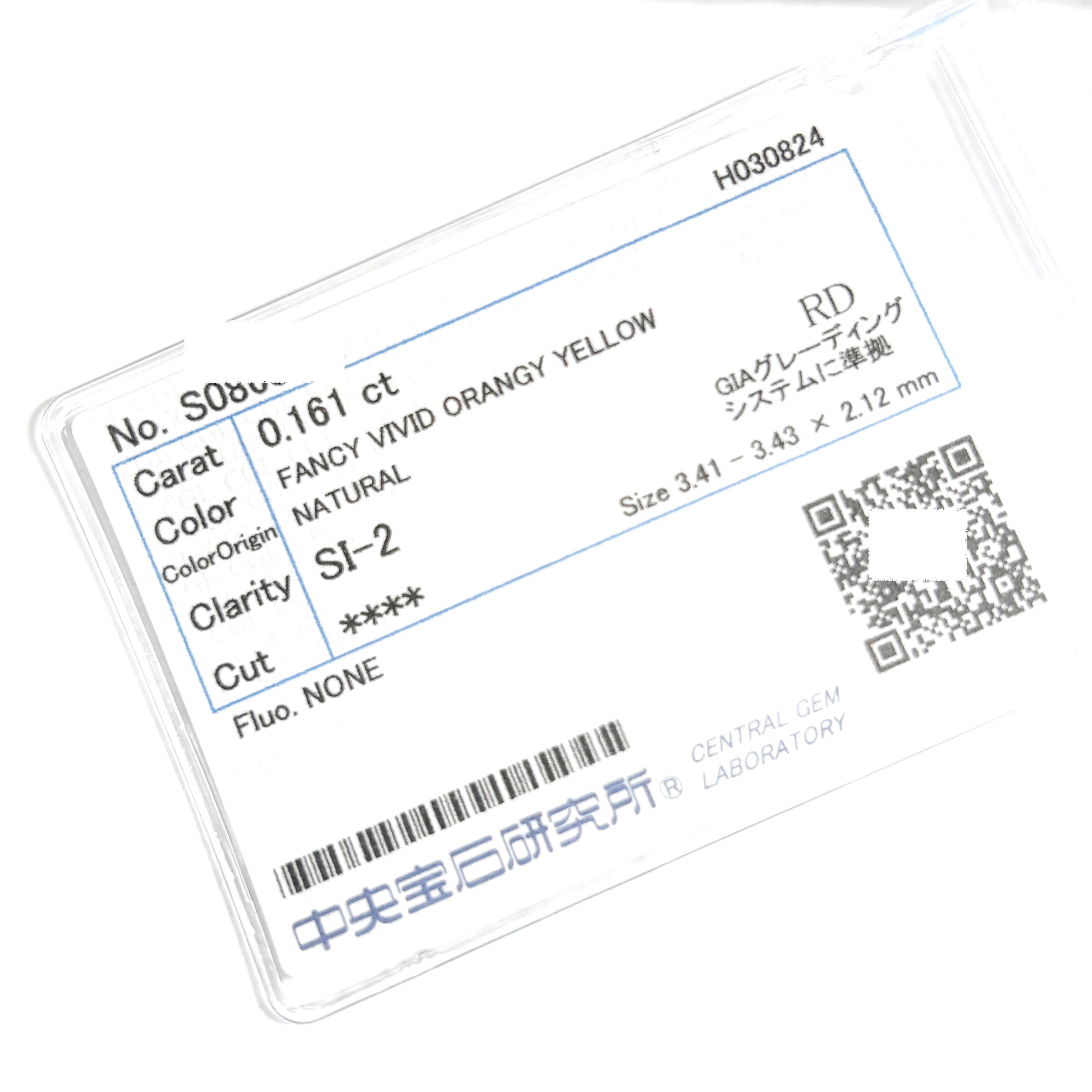 【希少】0.161ct Fancy Vivid Orangy Yellow ファンシー ビビッド オレンジ イエロー ダイヤモンド ルース 裸石 中央宝石研究所ソーティング カラーダイヤモンド ラウンド ダイヤモンド Natural Yellow Diamond