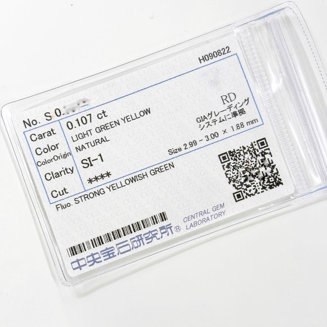 【超レア】 0.107ct Light Green Yellow SI2 グリーン イエロー ダイヤモンド ルース 裸石 グリーンダイヤモンド イエローダイヤモンド 天然 ダイヤモンド 中央宝石研究所ソーティング 蛍光 ダイヤモンド ラウンド