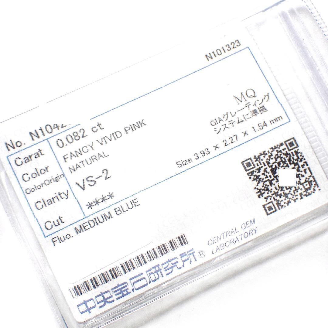 【超希少】0.082ct Fancy Vivid Pink ファンシー ビビッド ピンク 天然 ピンク ダイヤモンド ルース 裸石 マーキスカット 中央宝石研究所ソーティング CGL Natural Pink Diamond