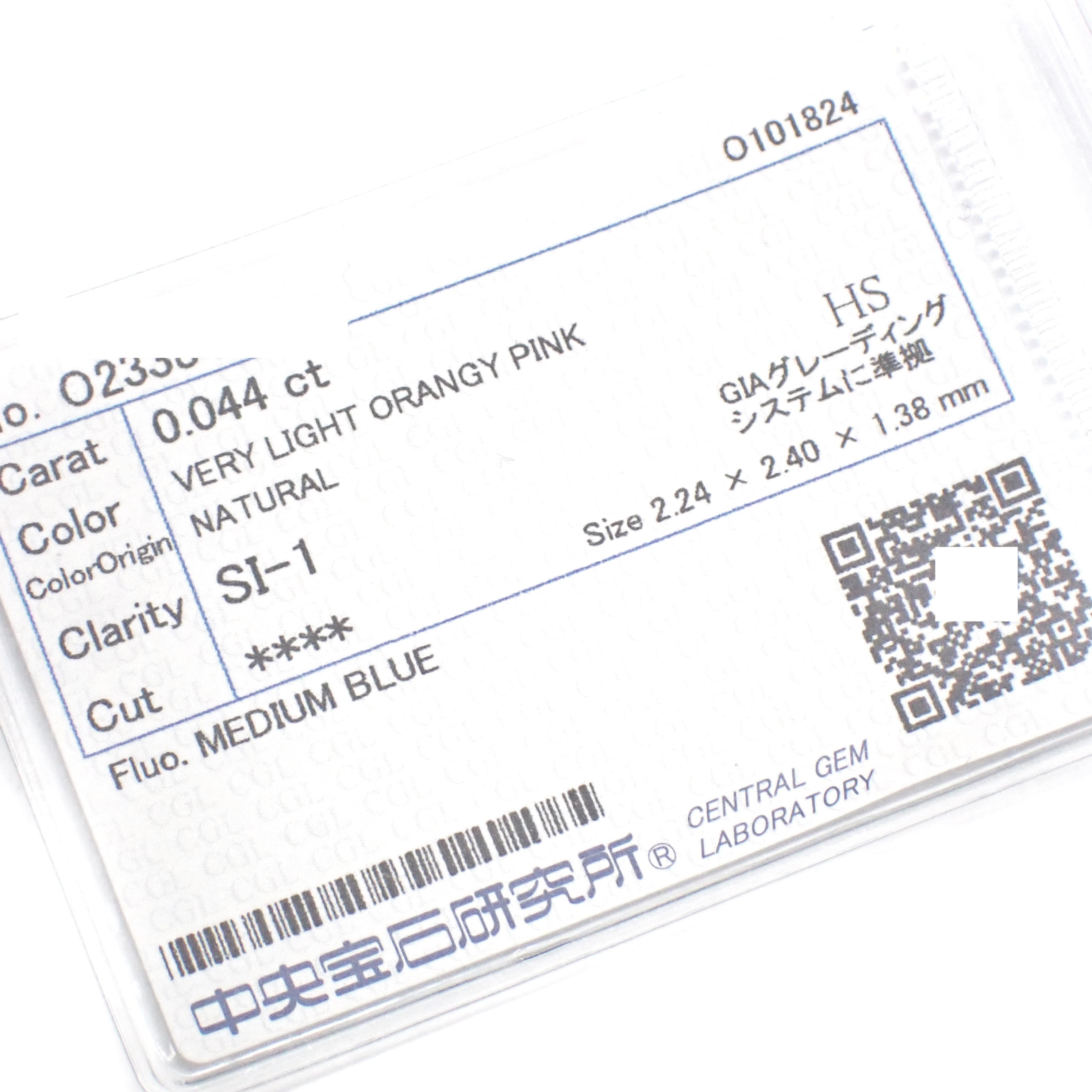 こちらは 0.044カラットの Very Light Orangy Pink ダイヤモンドです。