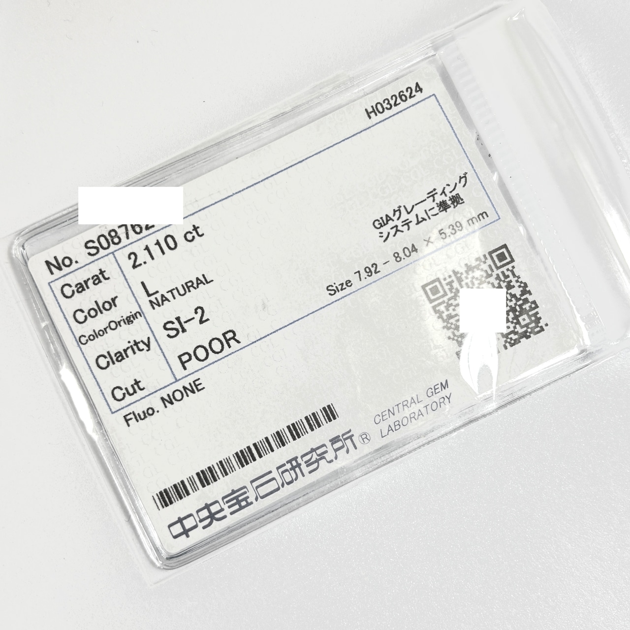 付属品 : 中央宝石研究所ソーティング