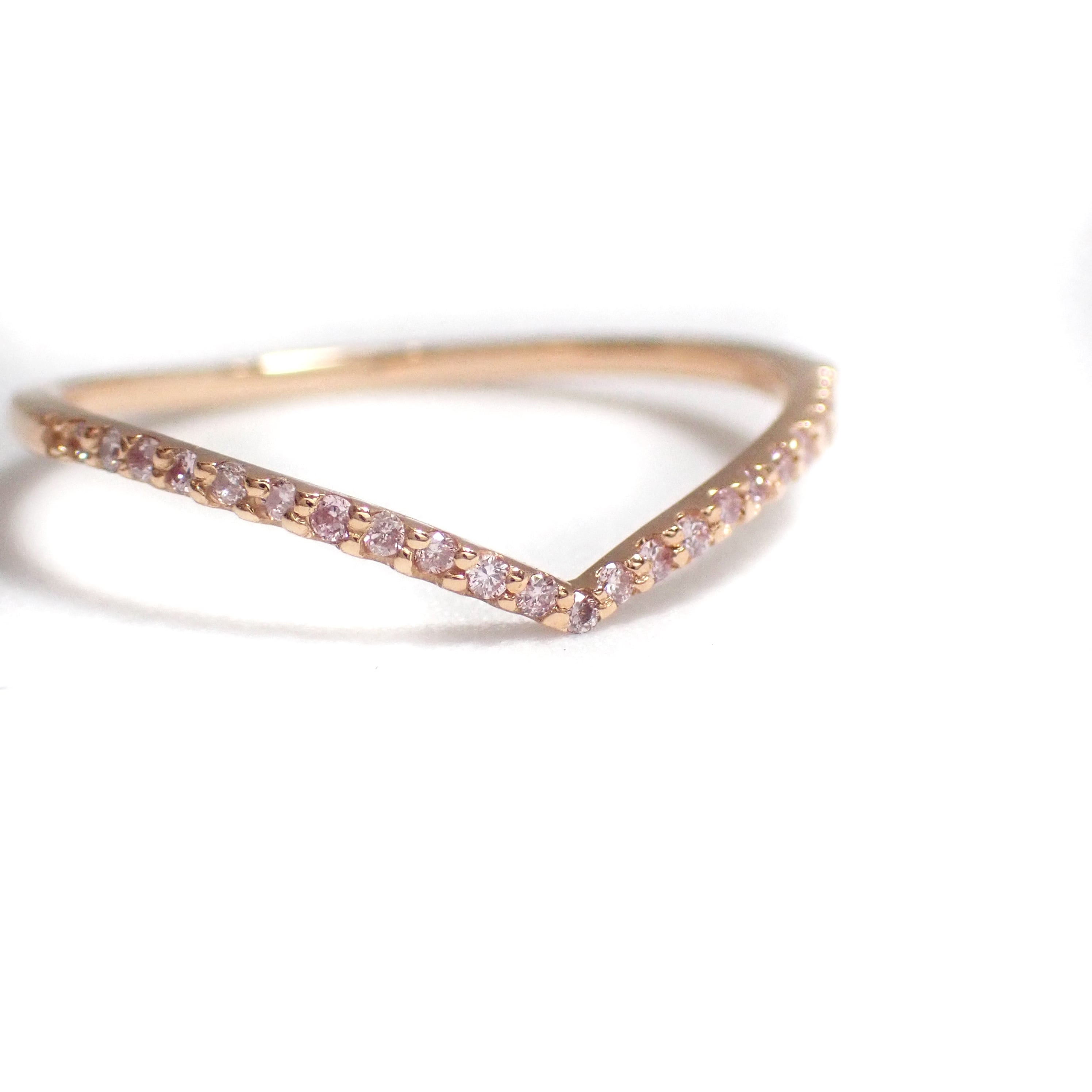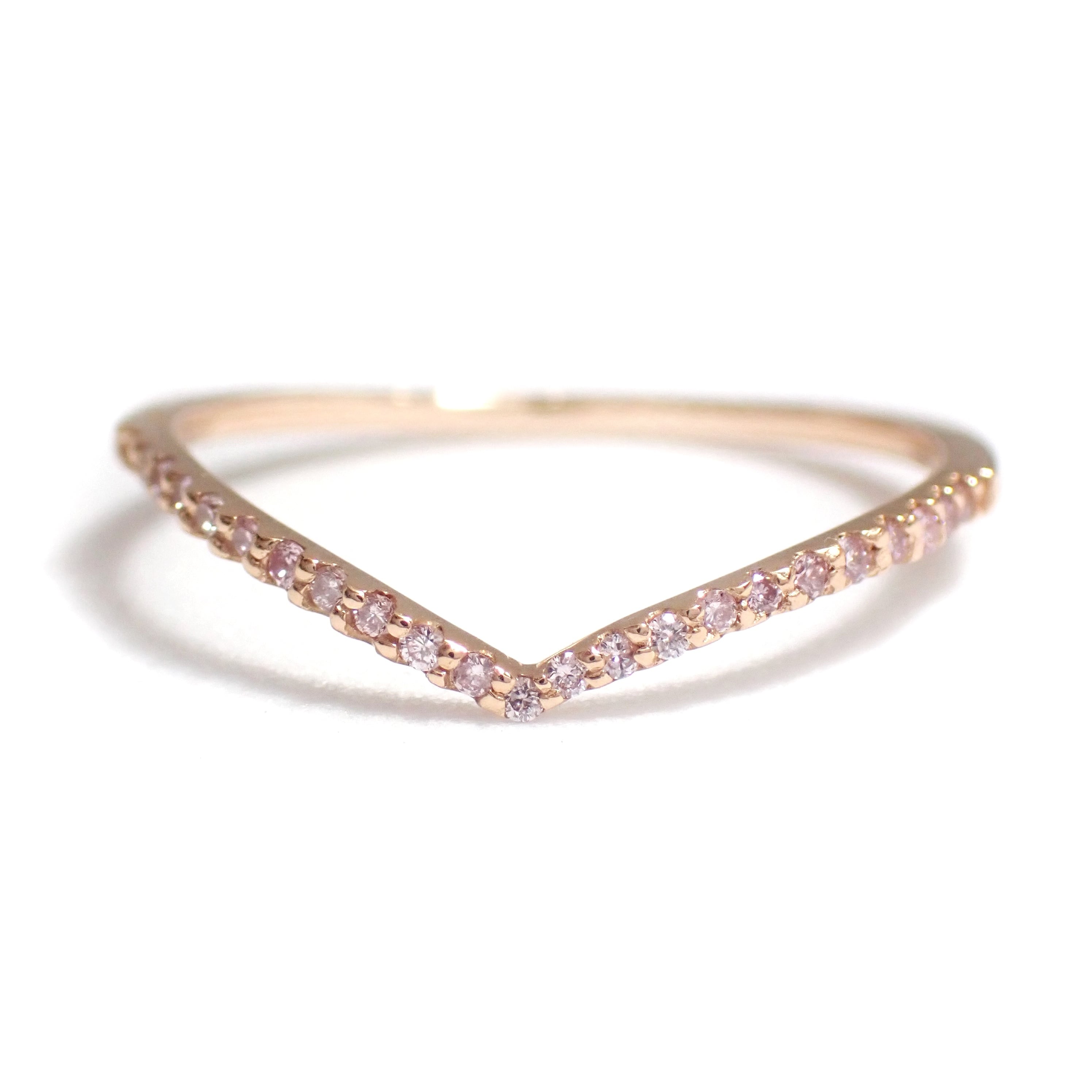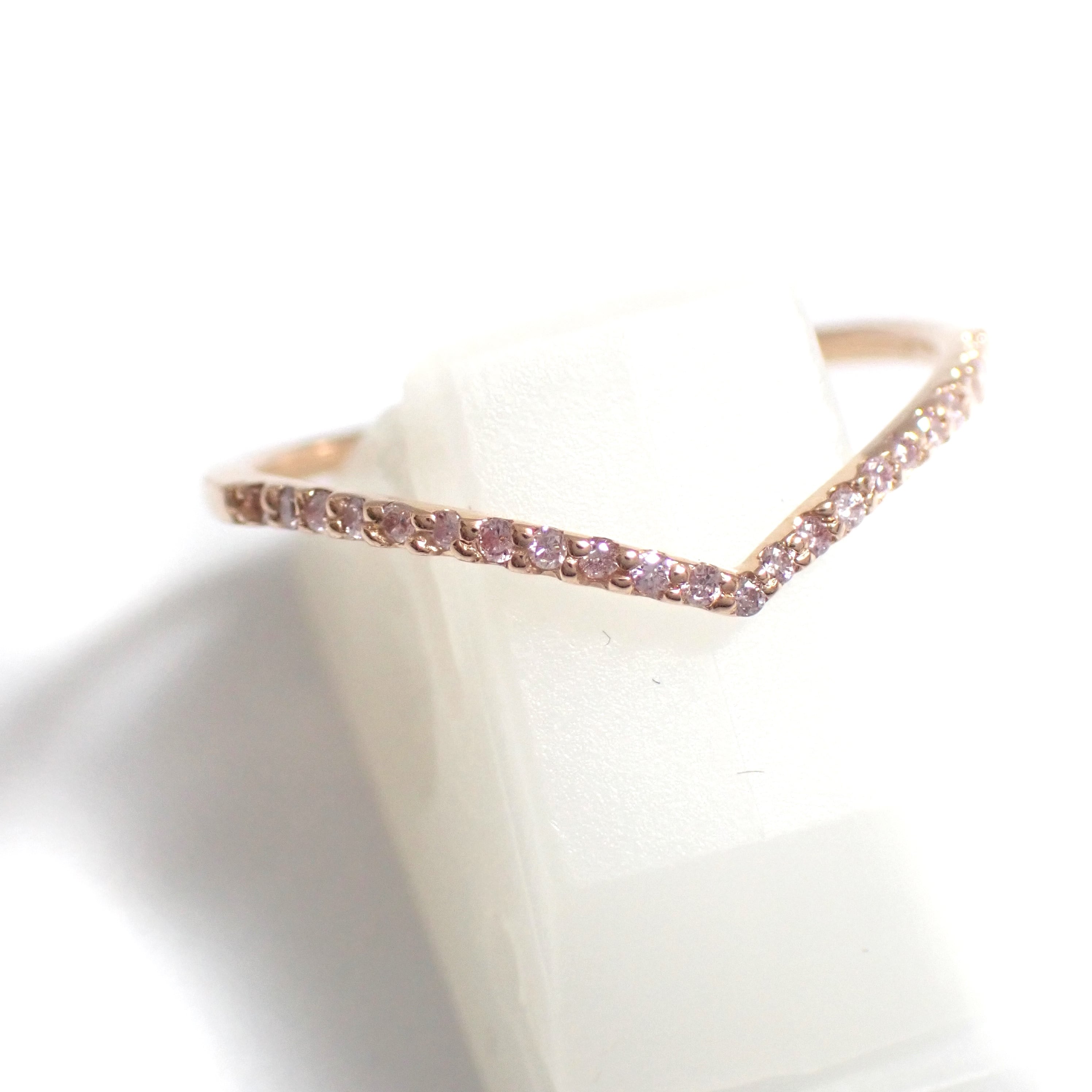 【クリスマスセール】 K18 金 ゴールド ピンクゴールド 0.078ct 天然 ピンク ダイヤモンド リング 指輪 V字型 V型 Vシェイプリング エタニティリング 天然 ピンクダイヤリング Natural Pink Diamond Ring