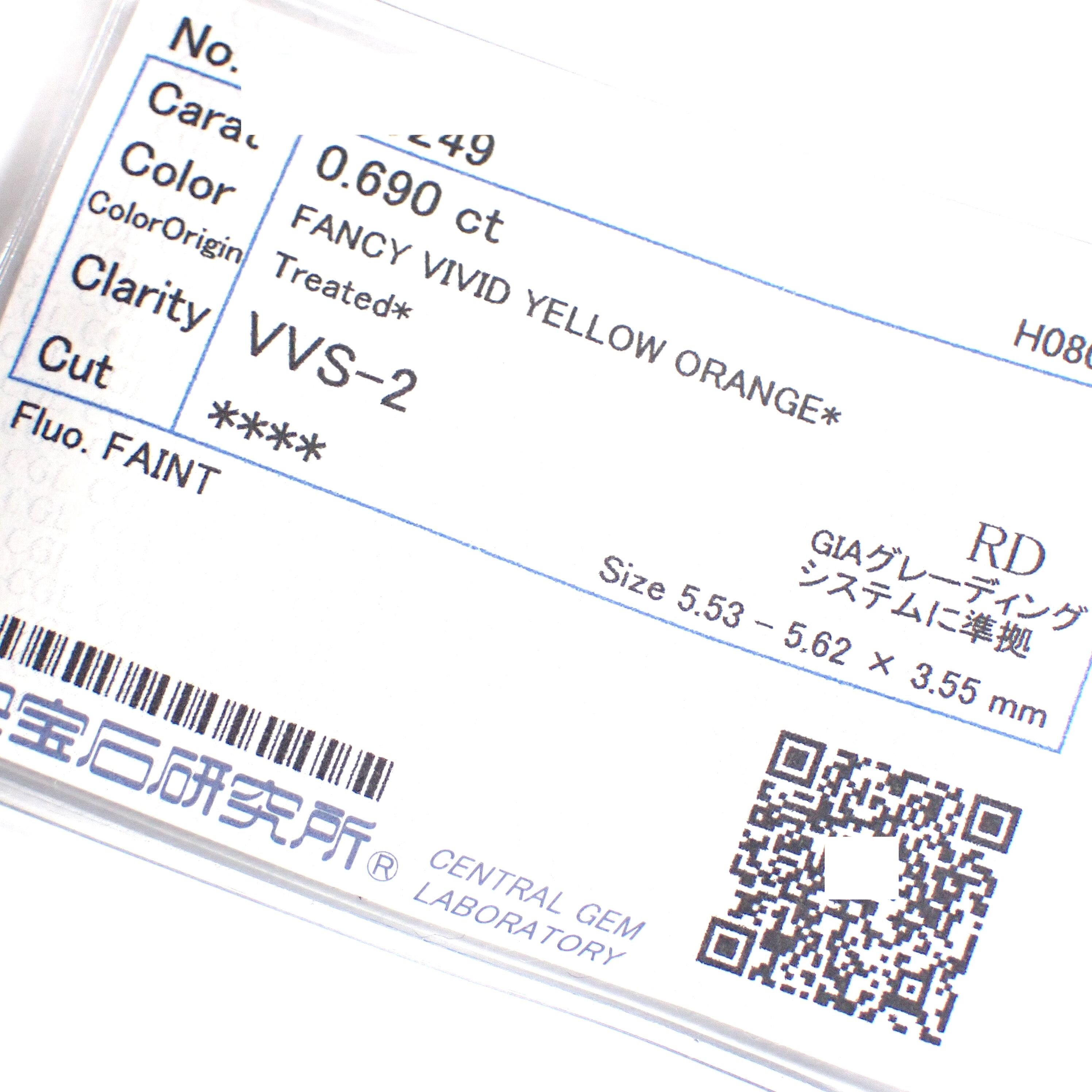 【希少】 0.690ct Fancy Vivid Yellow Orange VVS2 ファンシー ビビッド イエロー オレンジ ダイヤモンド ルース 裸石 トリートダイヤモンド 5.5mm Treated Orange Diamond