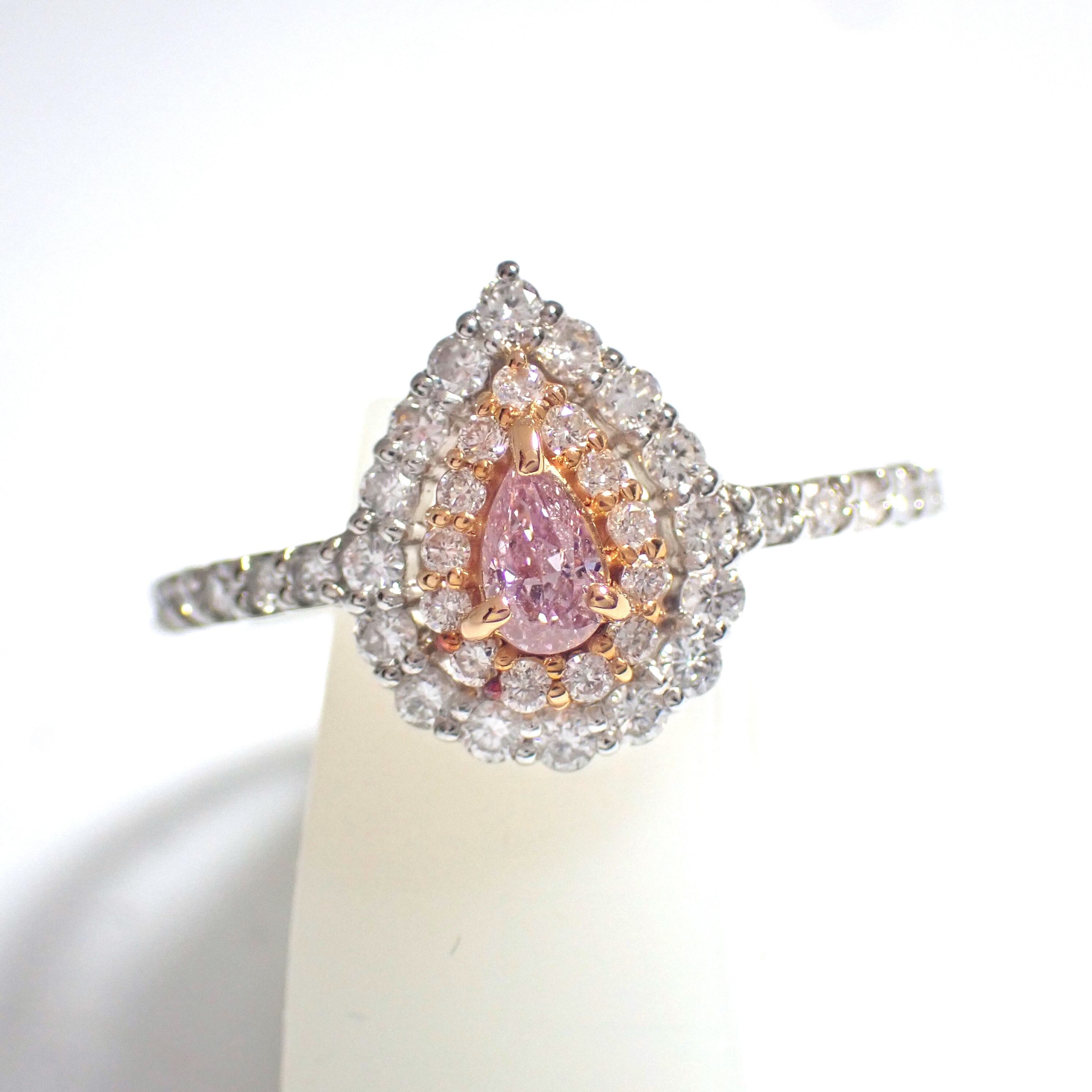 【新品 日本製】 Pt950 プラチナ K18 0.116ct Fancy Intense Purple Pink 天然 ピンク ダイヤモンド リング 指輪 0.41ct 天然 AGT 鑑定書 Natural Pink Diamond Ring