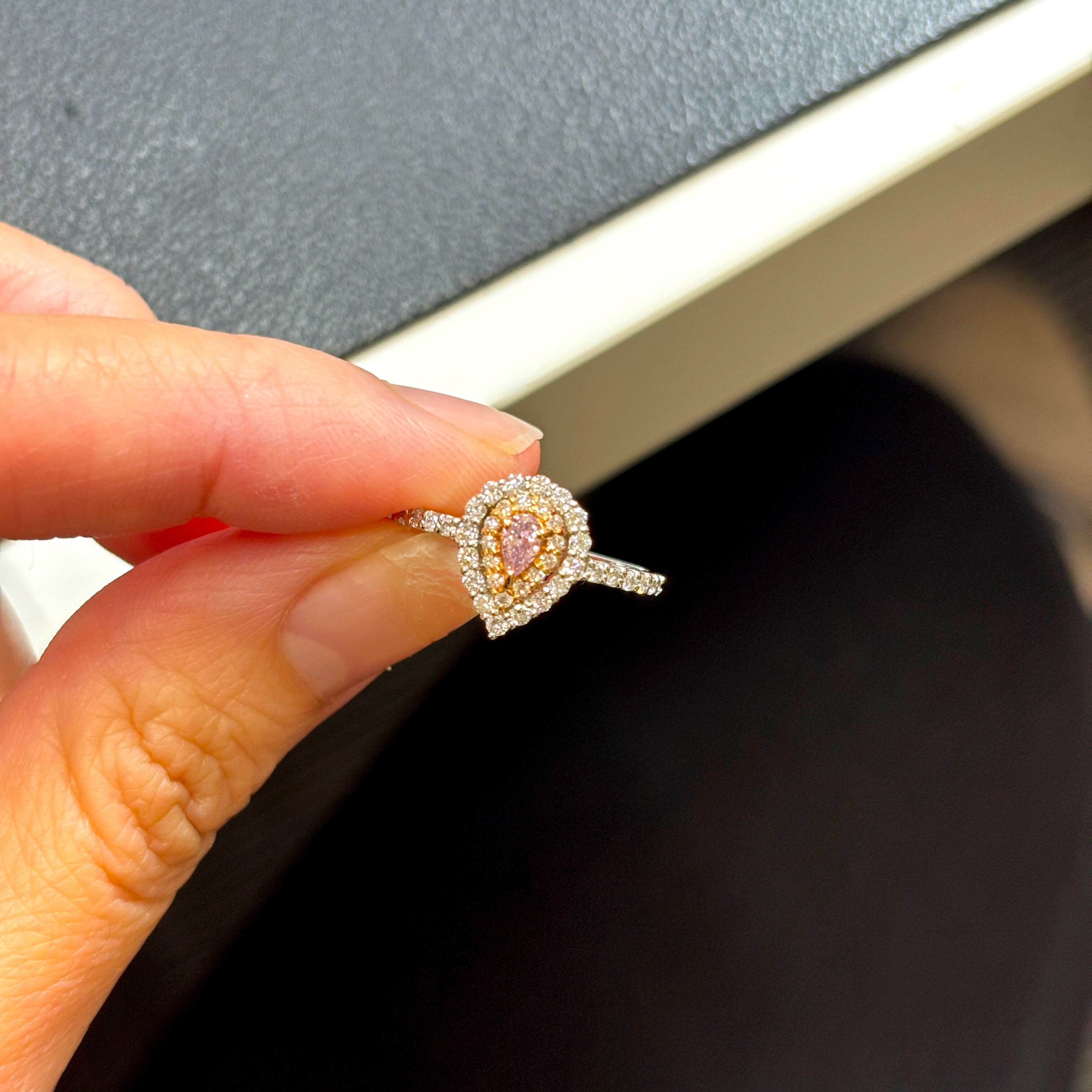 主石には 0.116ct の Fancy Intense Purple Pink を使用。
