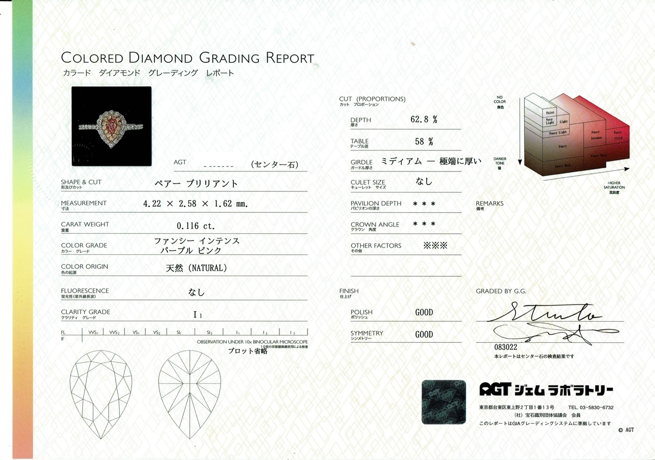 中央宝石研究所(CGL)や AGT の鑑定書を採用しております。