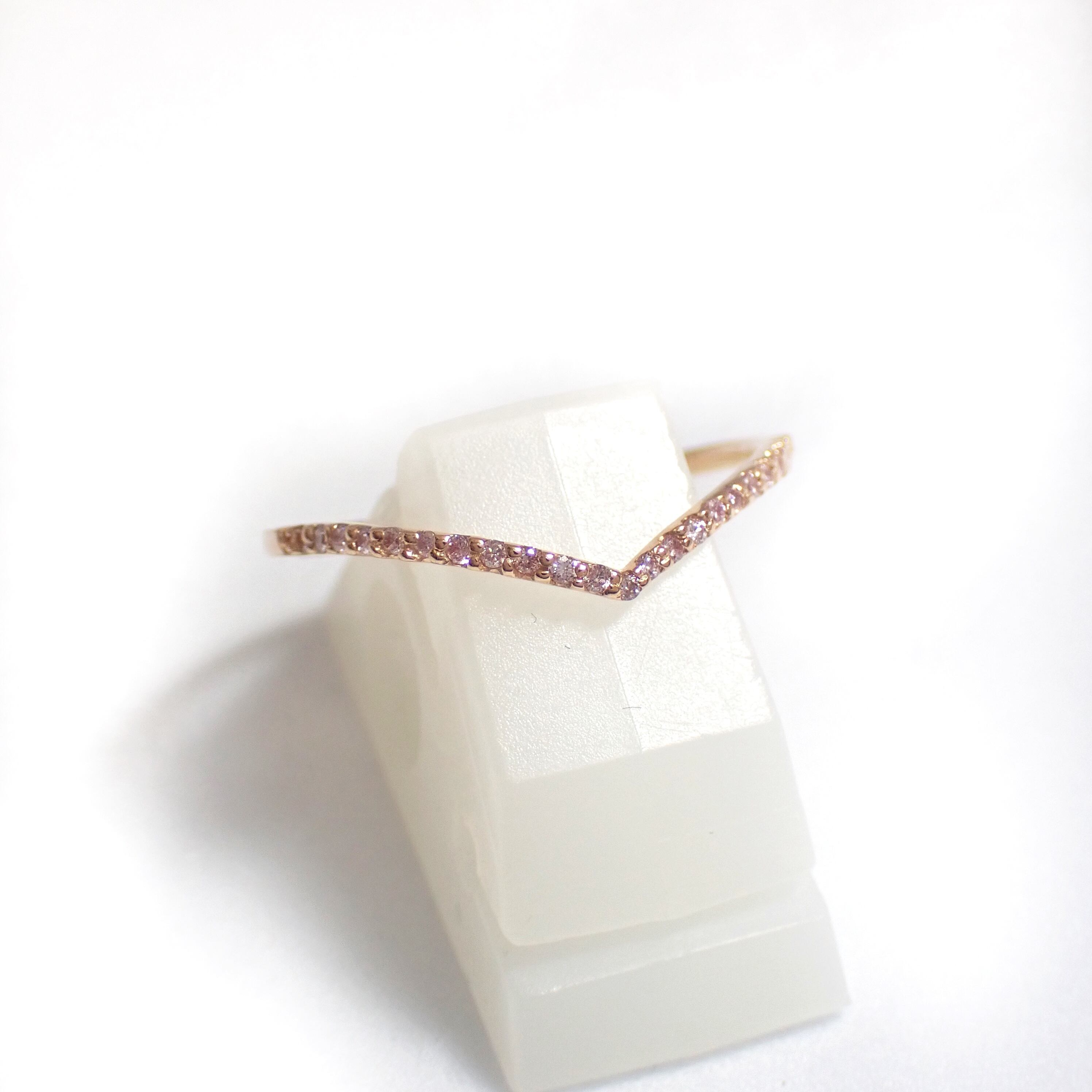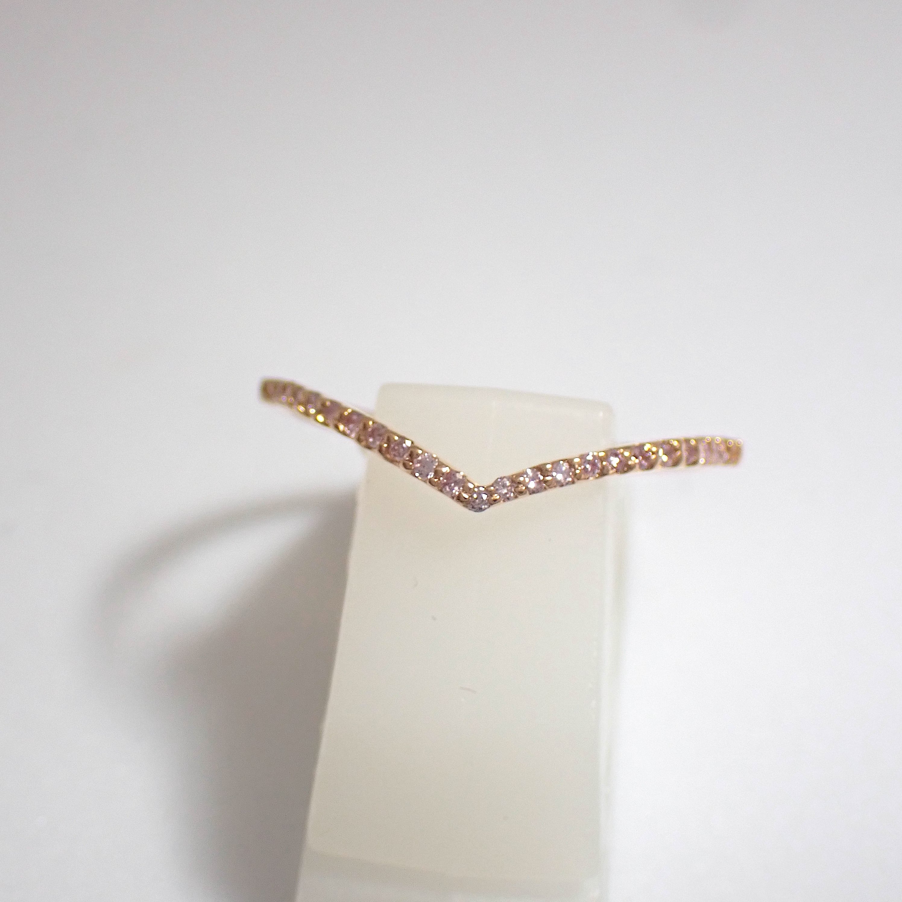 【受注制作ジュエリー】 K18 金 ゴールド ピンクゴールド 0.078ct 天然 ピンク ダイヤモンド リング 指輪 V字型 V型 Vシェイプリング エタニティリング 天然 ピンクダイヤリング Natural Pink Diamond Ring