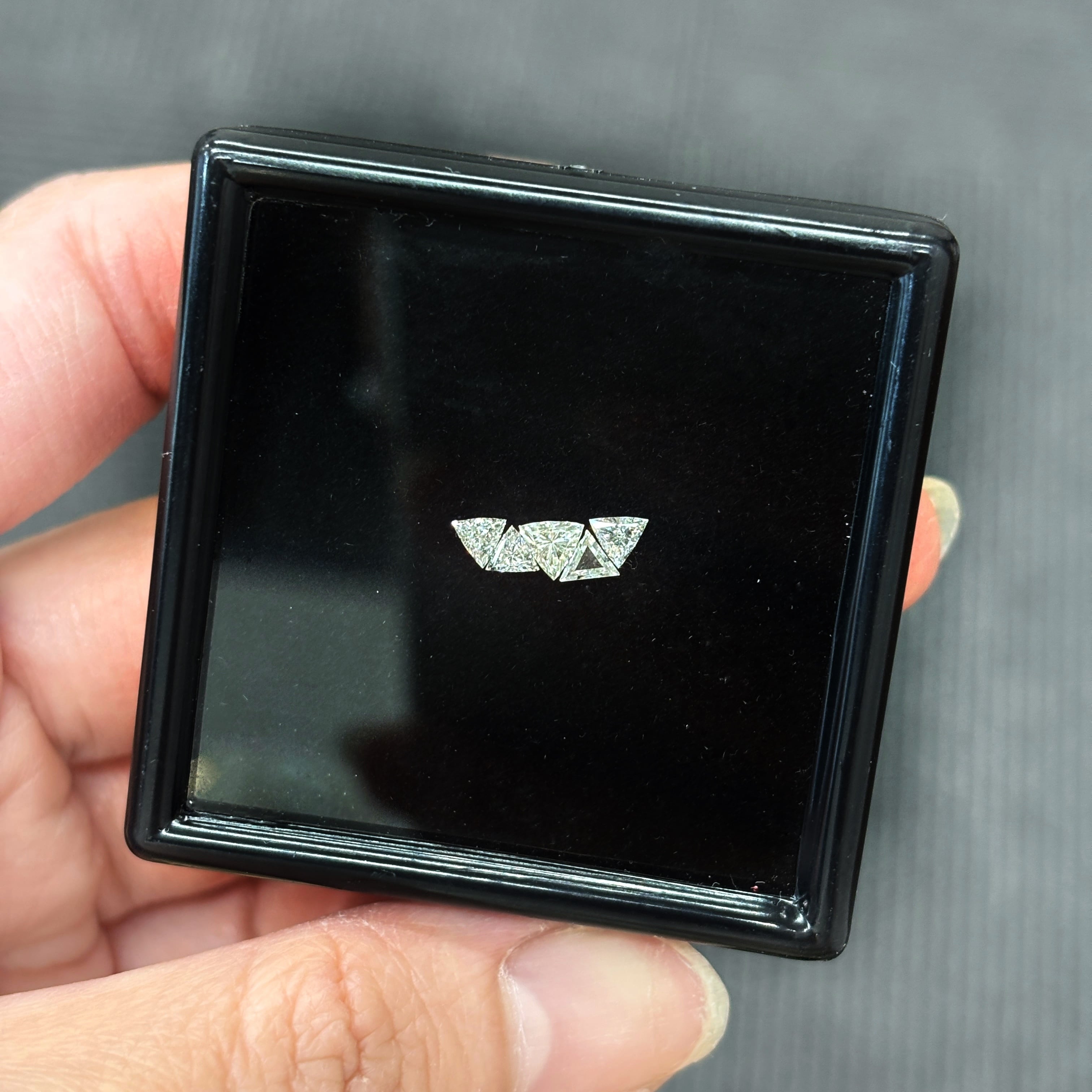 こちらは、市場でも非常に希少なトリリオンカットのセットです。