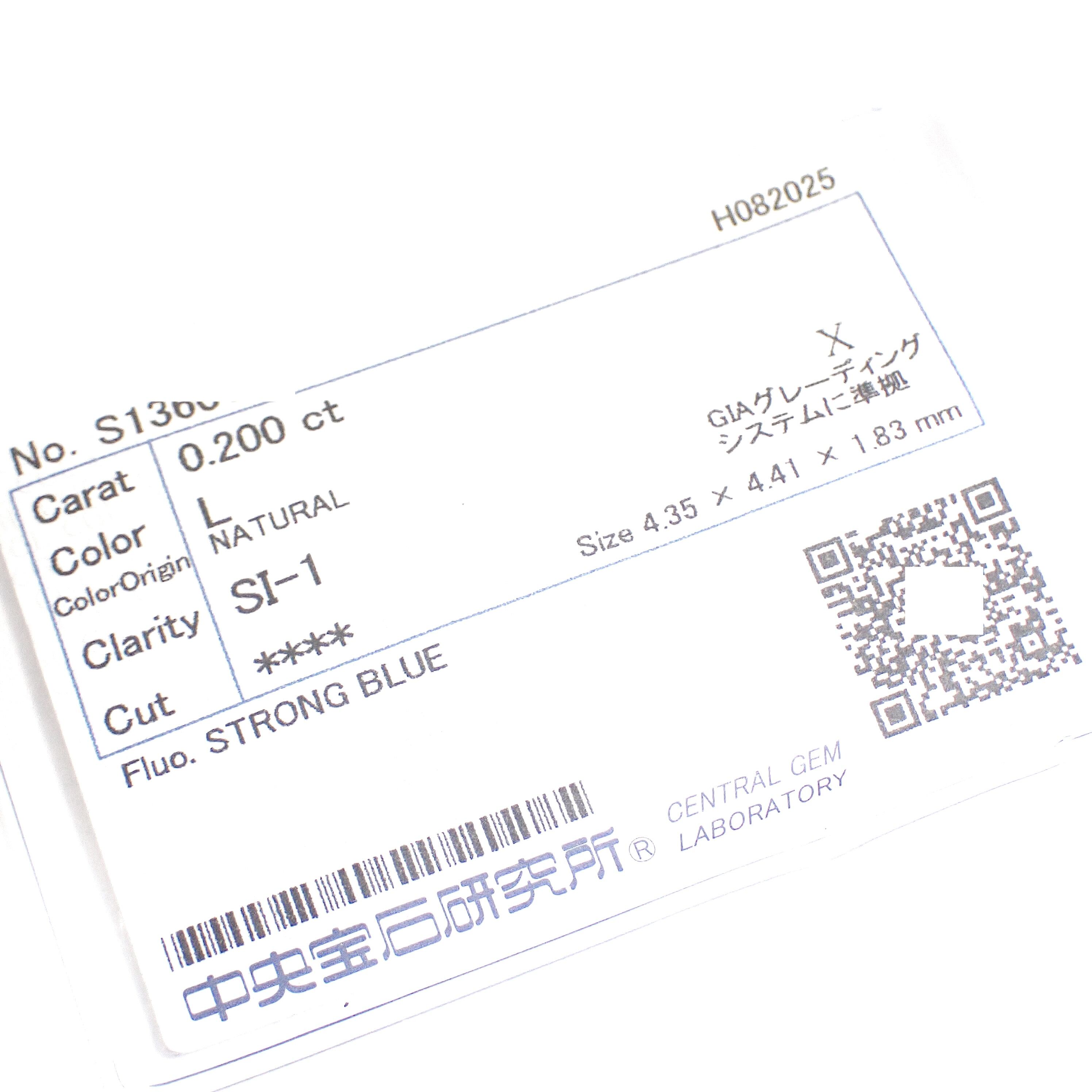 こちらの 0.2カラット Lカラー SI1クラリティ
