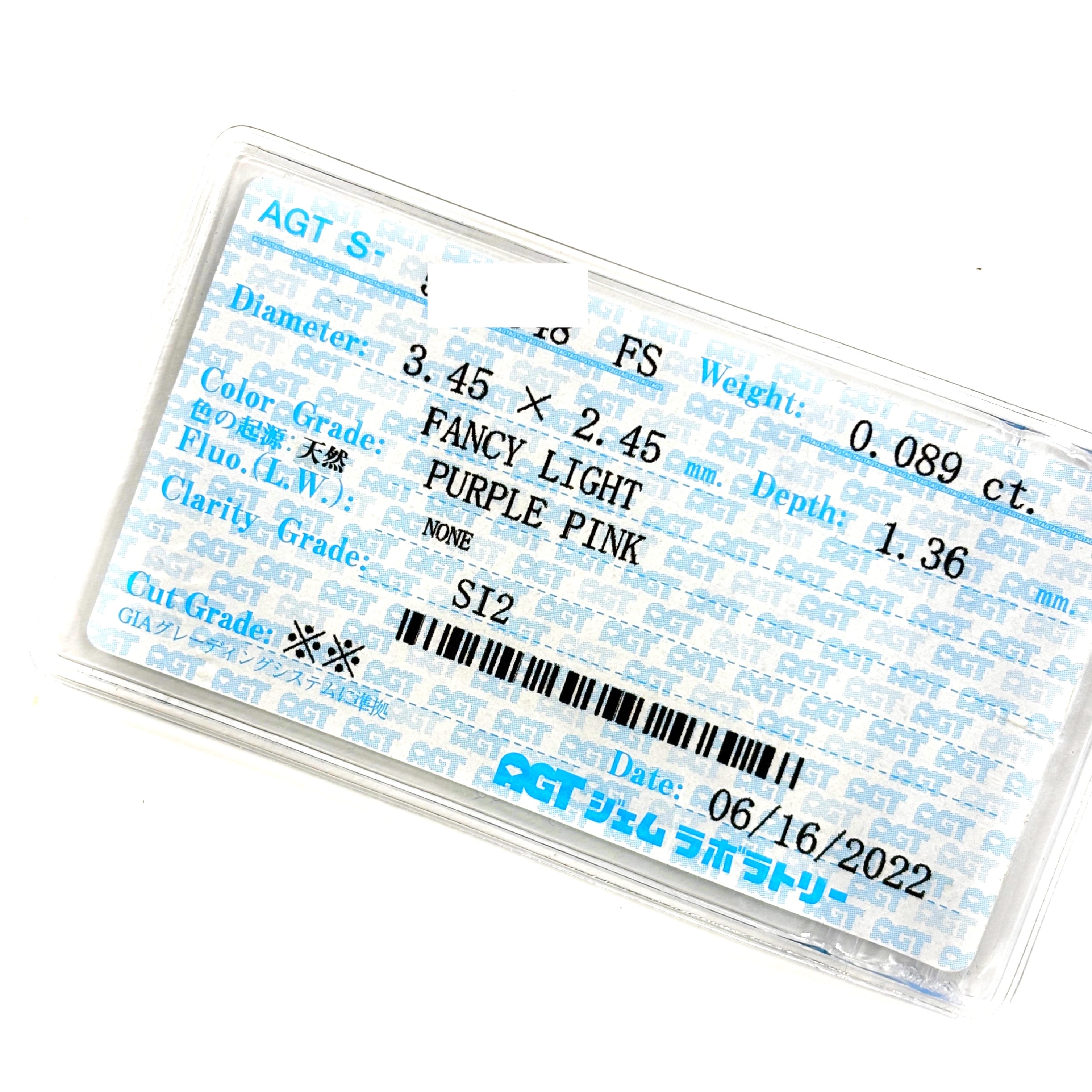 【特別価格】 0.089ct Fancy Light Purple Pink ピンク ダイヤモンド パープル ダイヤモンド ルース 裸石 天然 AGTソーティング ピンクダイヤ オーバルシェイプ Natural Pink Diamond Oval Shape