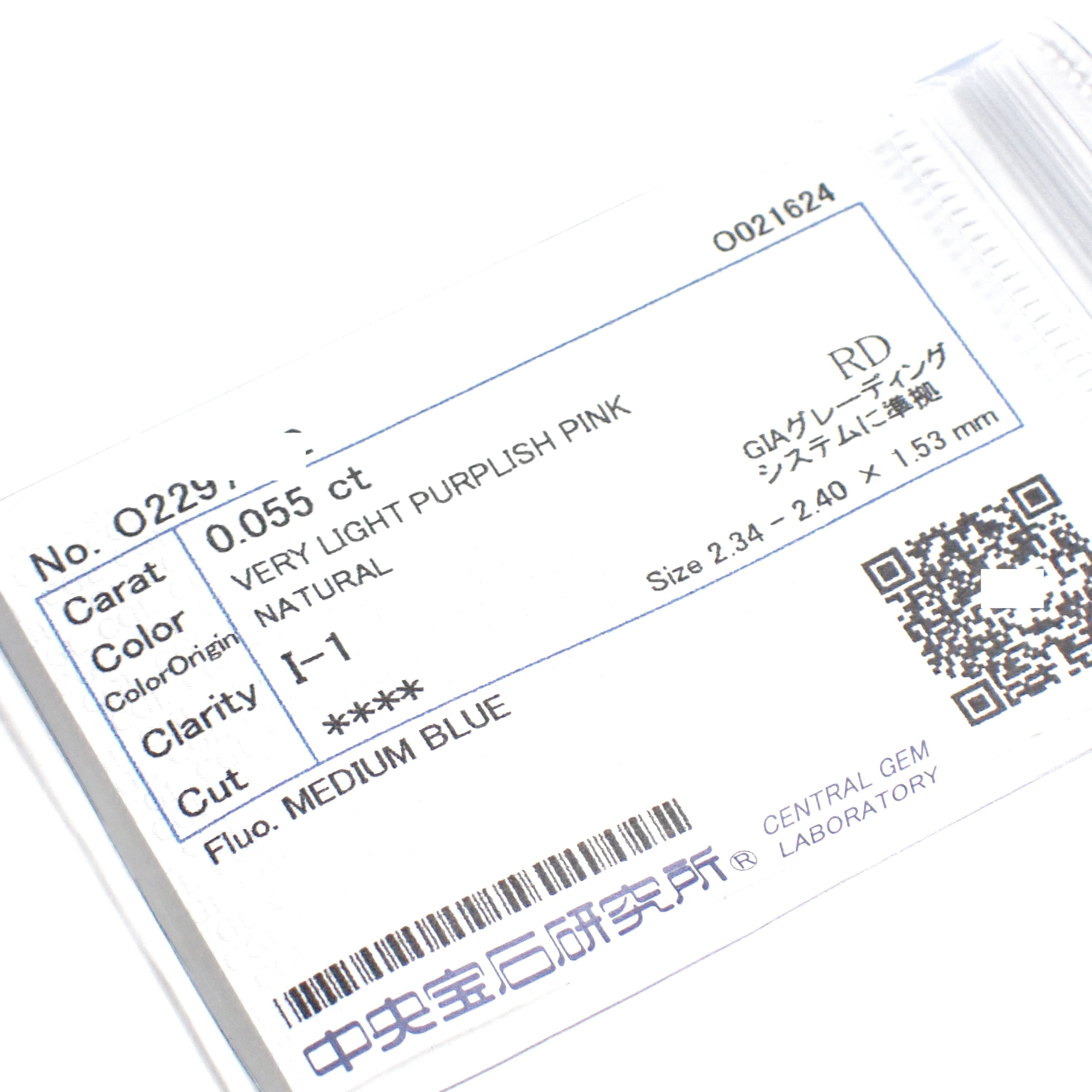 【卸売価格】 Very Light Purplish Pink 0.055ct ラウンド ピンク ダイヤモンド ルース 裸石 天然 中央宝石研究所ソーティング CGL ピンクダイヤモンド 2.3mm Natural Pink Diamond Round Brilliant
