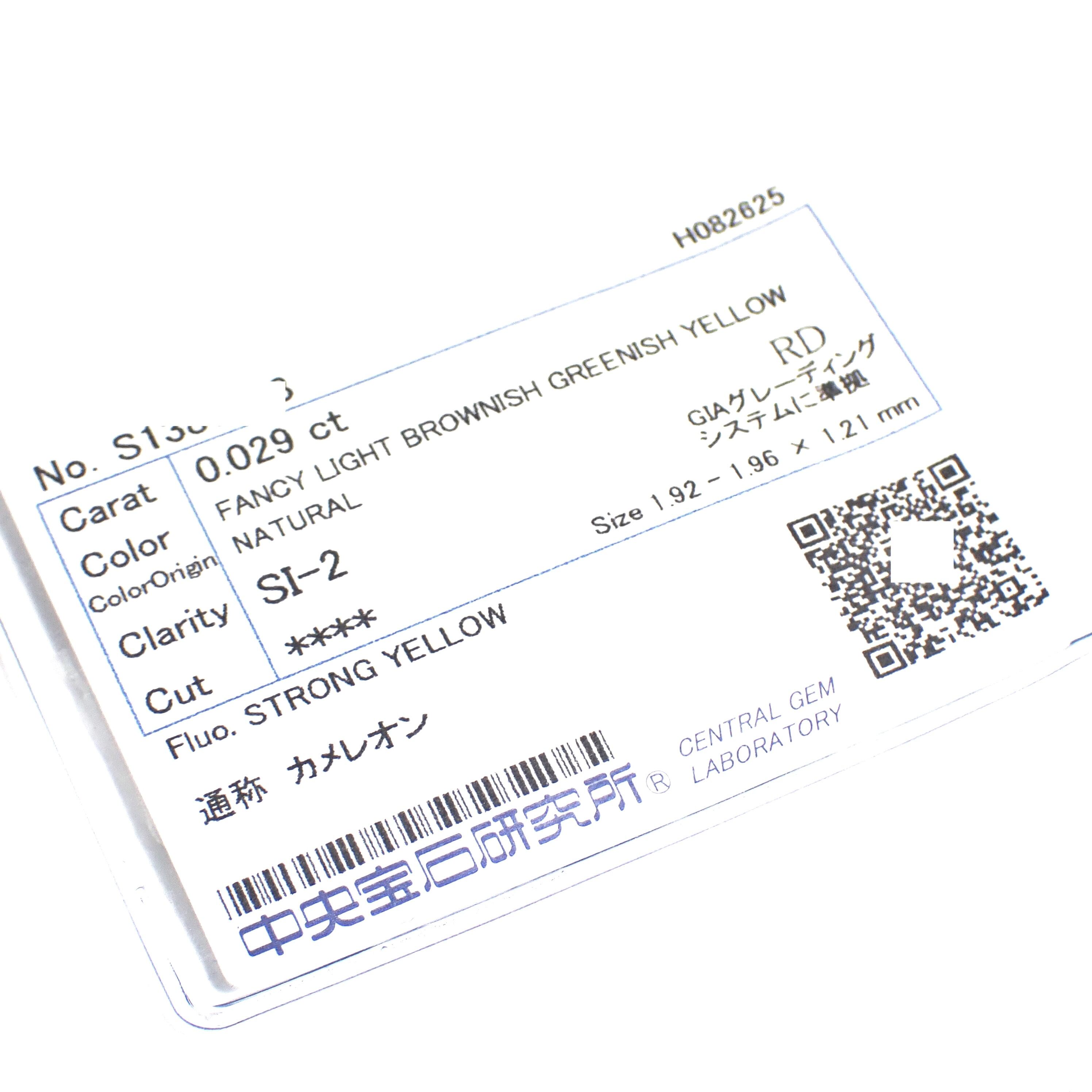 【超希少】 0.029ct カメレオン ダイヤモンド 天然 イエロー ダイヤモンド 天然 グリーン ダイヤモンド ルース 裸石 天然 グリーンダイヤ 中央宝石研究所ソーティング 蛍光 ダイヤモンド UV ダイヤモンド Rare Natural Chameleon Diamond