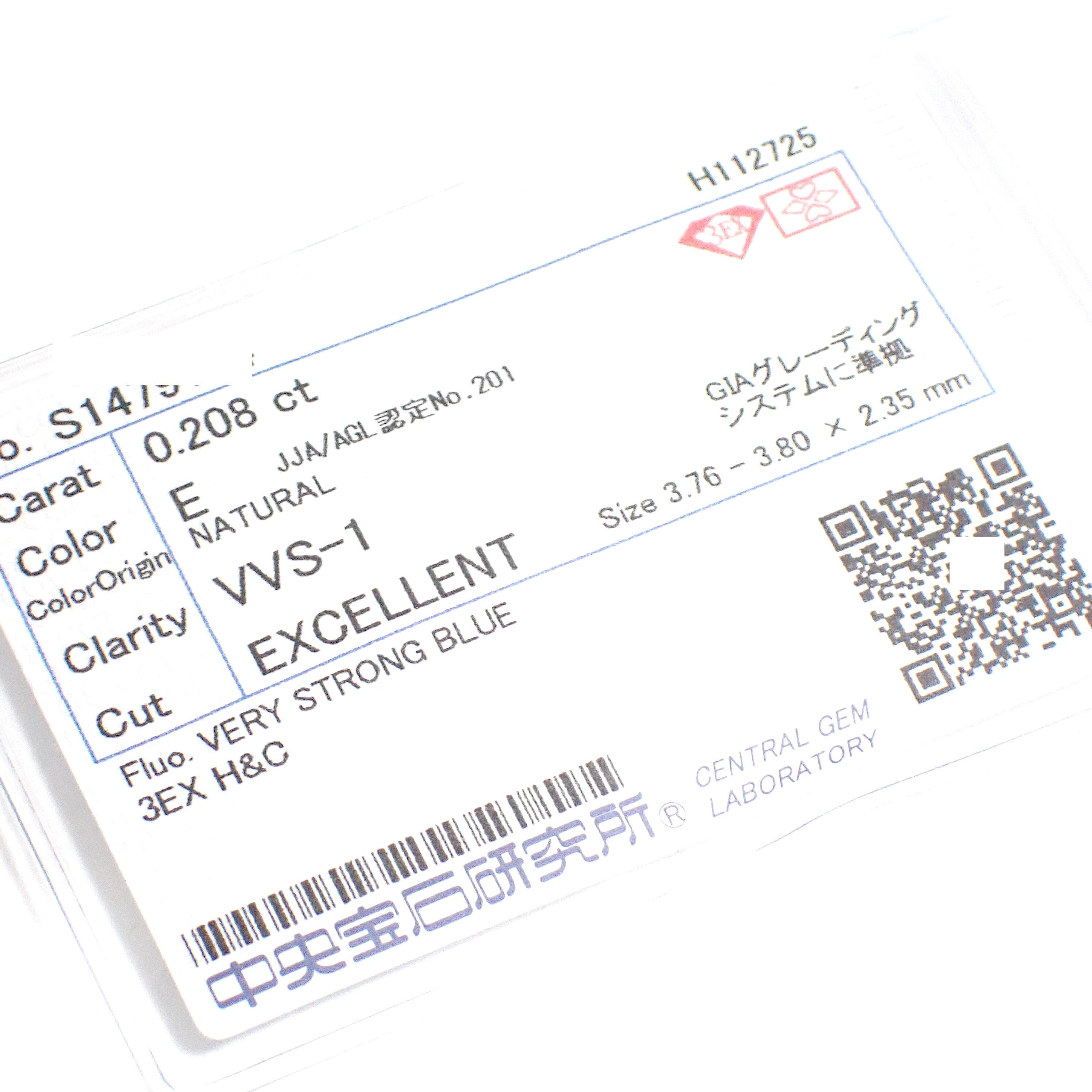 【卸売価格】0.208ct E VVS1 3EX H&C ラウンド ダイヤモンド ルース 裸石 天然 無傷 無色 透明 稀少 希少石 ダイアモンド 中央宝石研究所 ラウンドブリリアントダイヤモンド 婚約指輪 0.2カラット 3.7mm Round Brilliant Natural Diamond