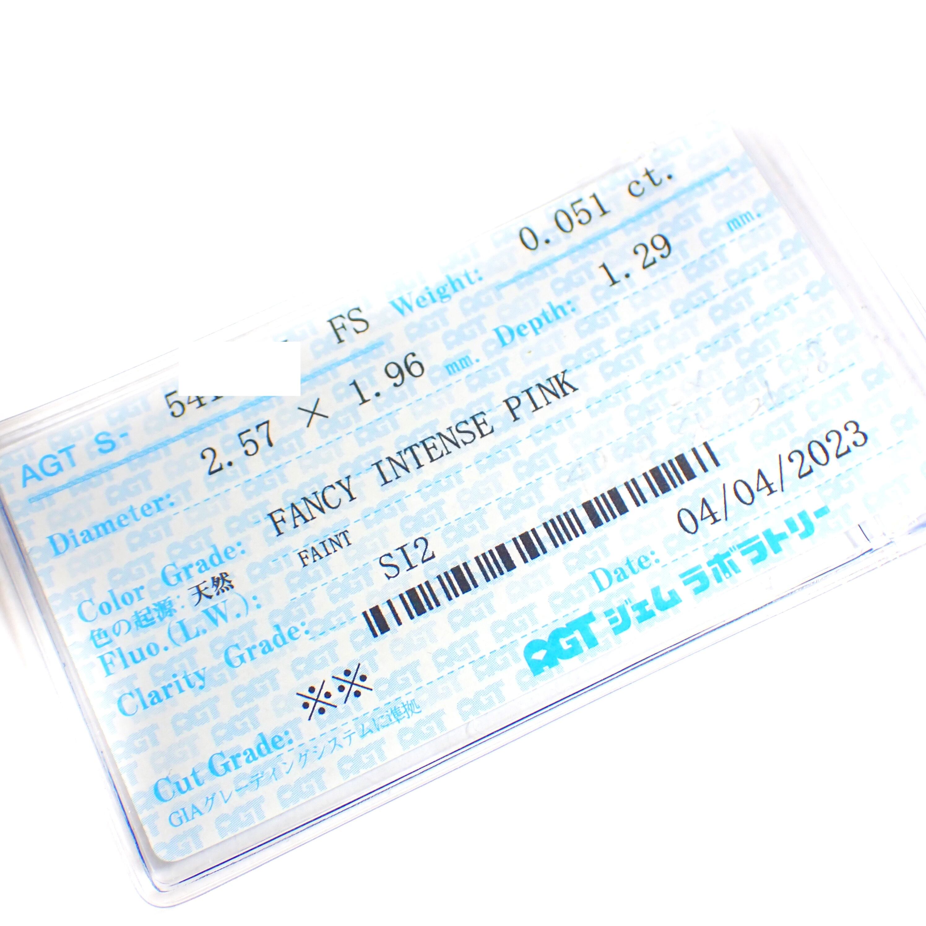 こちらは 0.051カラットの Fancy Intense Pink