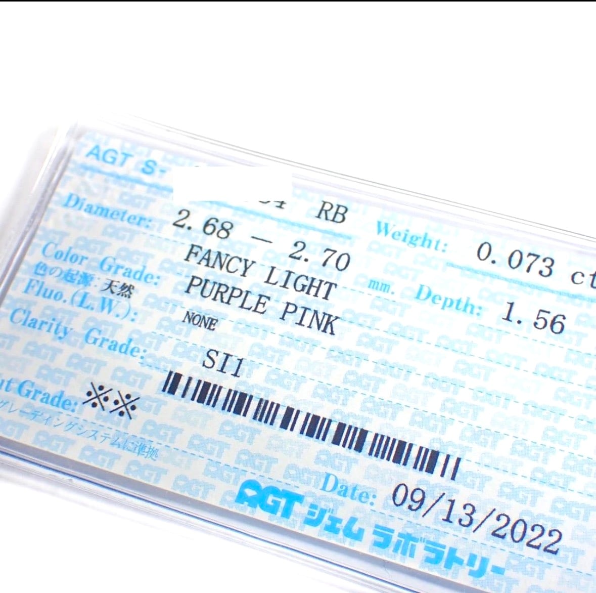 【卸売価格】 0.073ct Fancy Light Purple Pink 天然 ピンク ダイヤモンド ルース 裸石 天然 AGTソーティング ピンクダイヤ ラウンドブリリアント2.6mm Round Natural Pink Diamond
