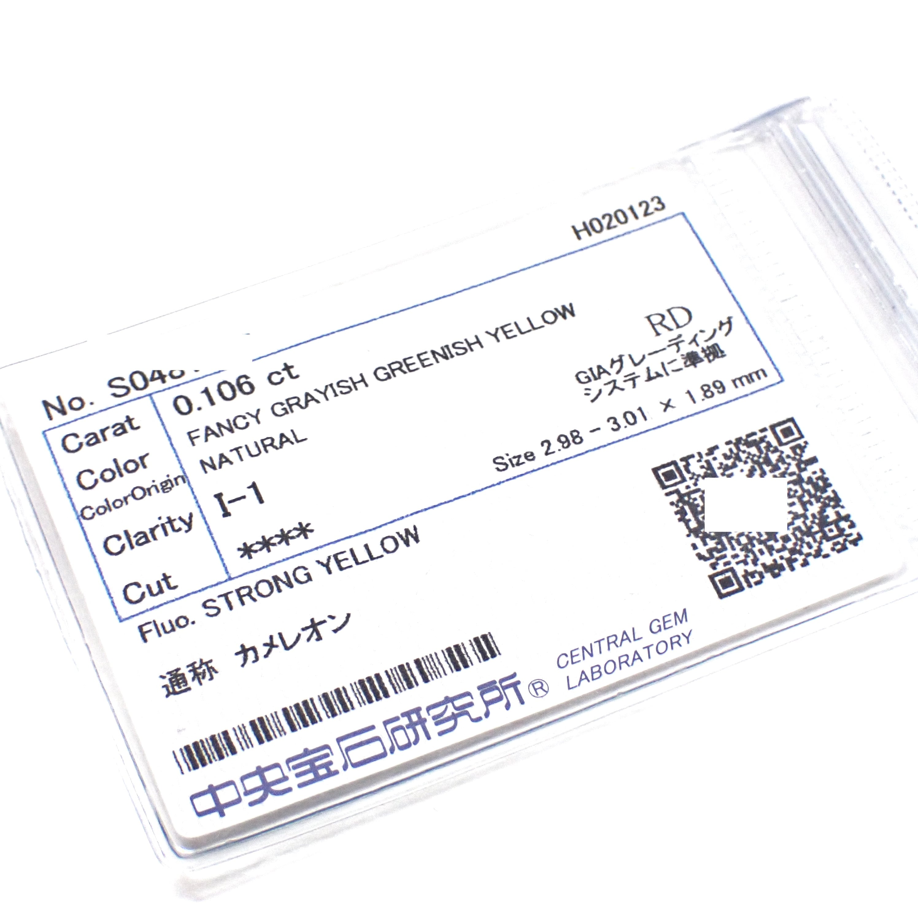 【超希少】 0.106ct カメレオン ダイヤモンド 天然 イエロー ダイヤモンド 天然 グリーン ダイヤモンド ルース 裸石 天然 グリーンダイヤ 中央宝石研究所ソーティング 蛍光 ダイヤモンド UV ダイヤモンド Rare Natural Chameleon Diamond