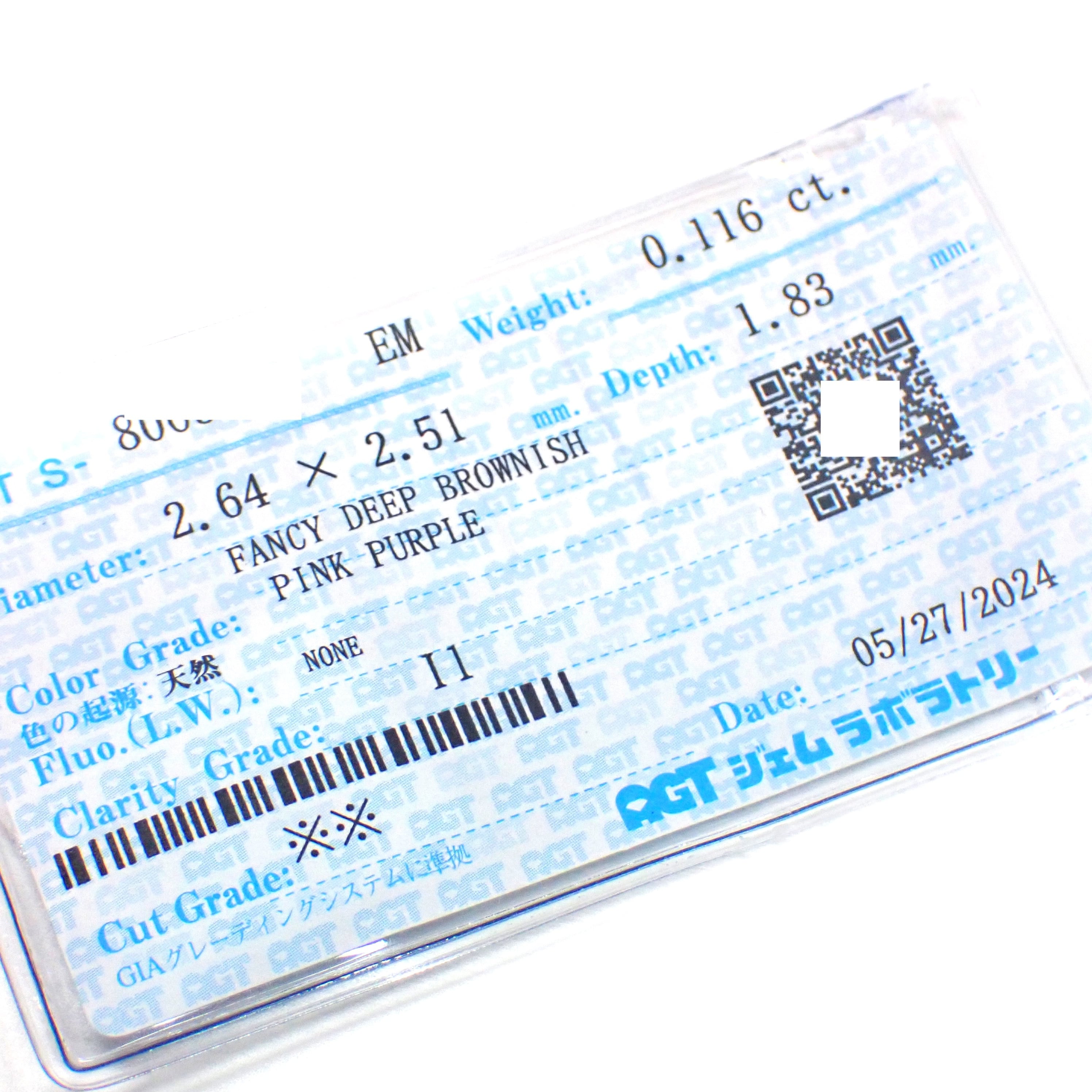 AGTのカラーグレードは Fancy Deep Brownish Pink Purple ですが、