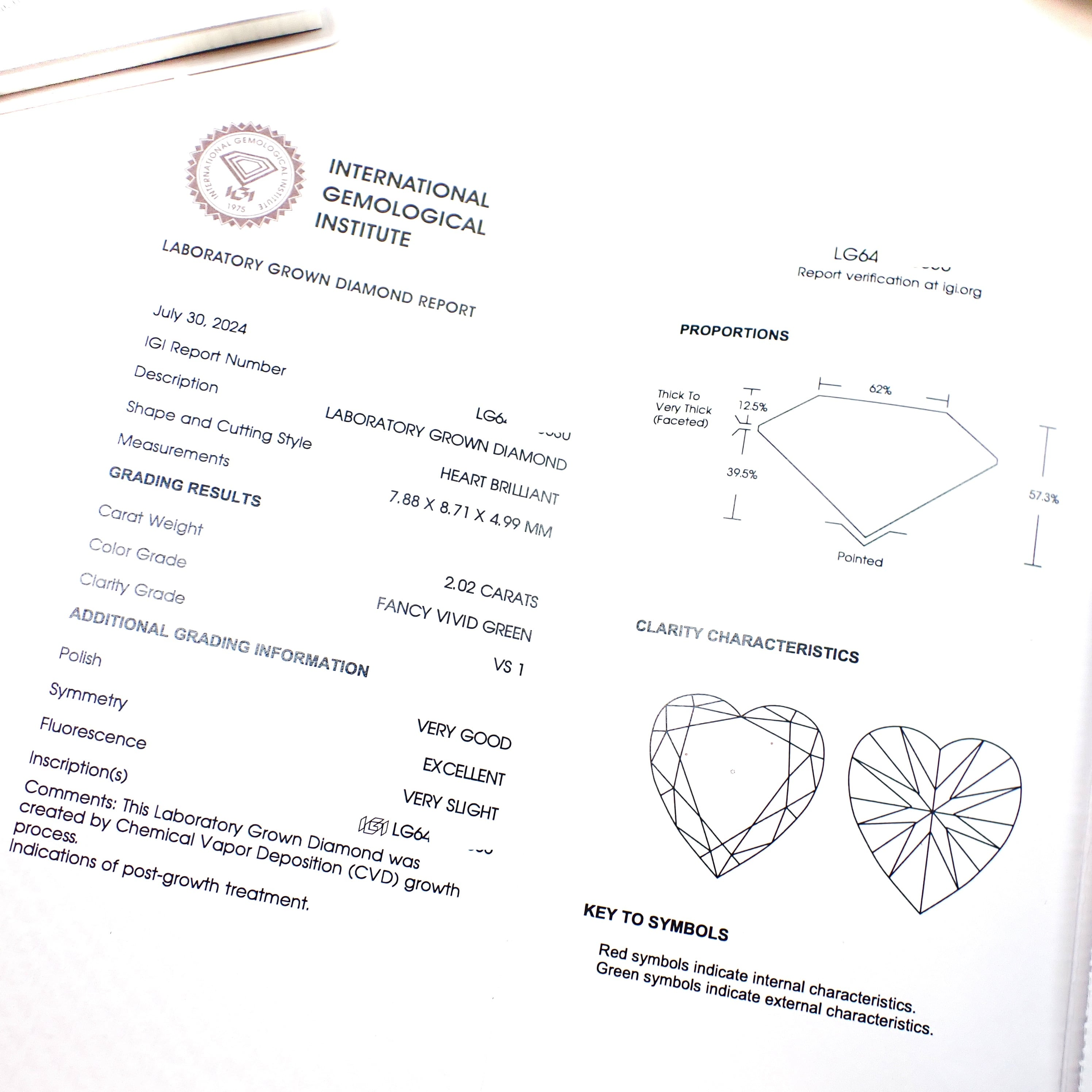 【希少】 大粒 2カラット 2.02ct Fancy Vivid Green VS1 ファンシー ビビッド グリーン ダイヤモンド ハートシェイプ ダイヤモンド ラボグロウン ダイヤモンド カラーダイヤモンド 2 Carat Heart Shape Fancy Vivid Green Diamond Lab Grown