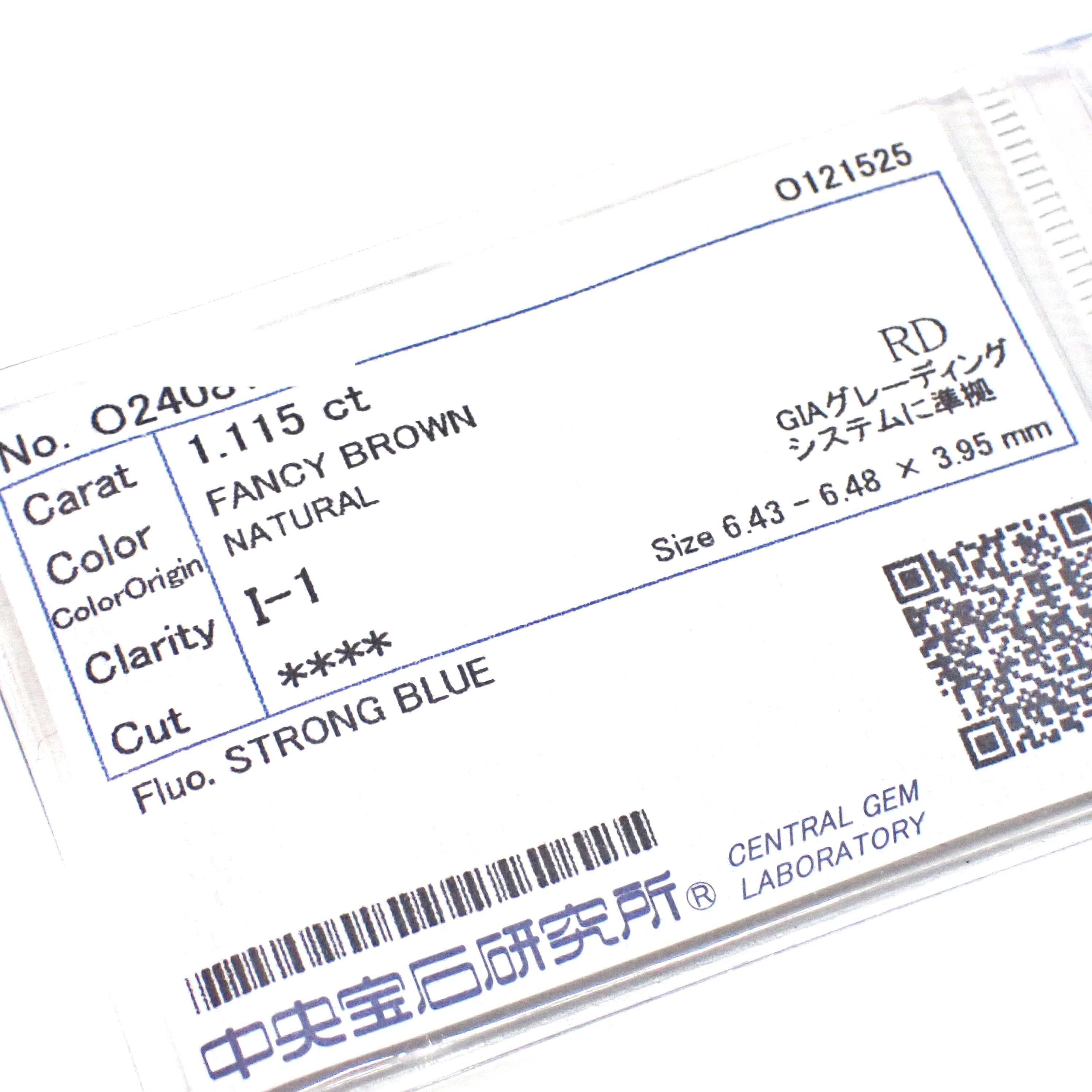 【卸売価格】大粒 1カラット 1.115ct Fancy Brown ファンシー ブラウン 天然 ダイヤモンド ルース 裸石 ラウンドブリリアント 中央宝石研究所 ソーティング Natural Brown Diamond Fancy Brown 1 Carat