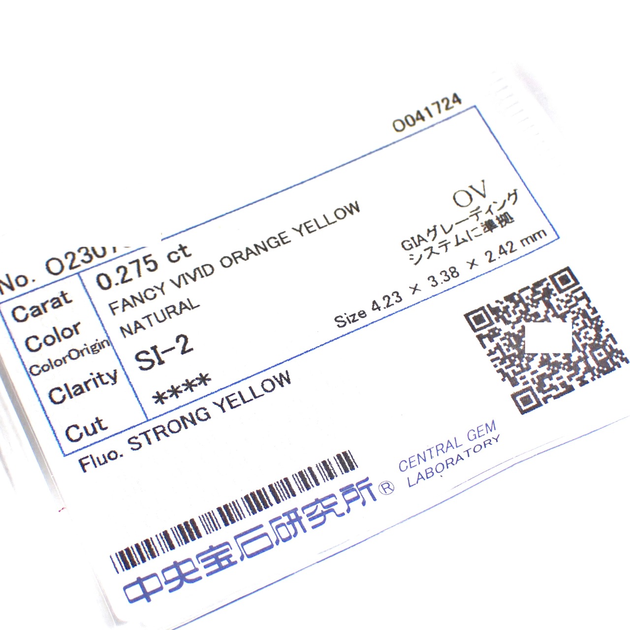 カラーグレードは Fancy Vivid Orange Yellow、