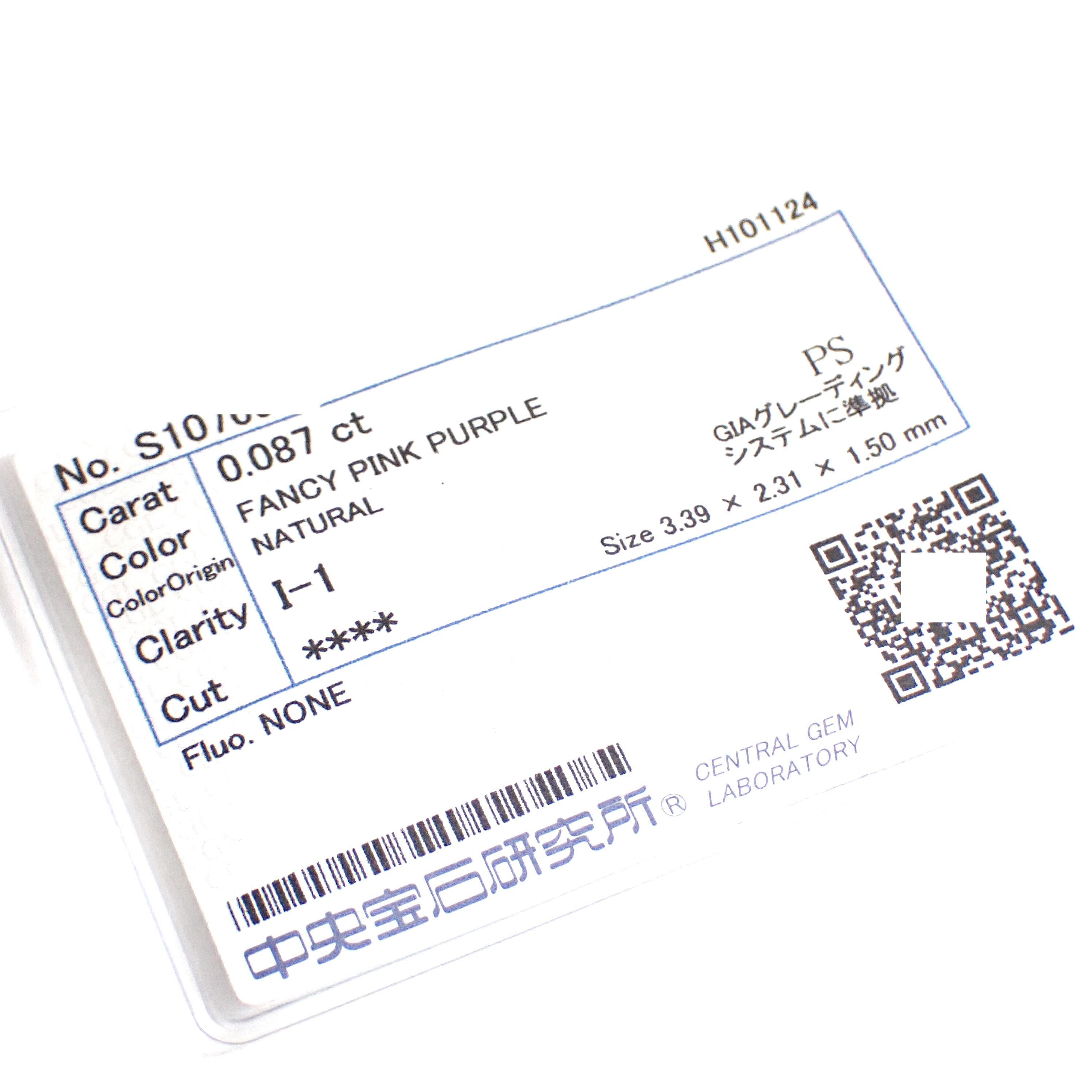 こちらは 0.877ct Fancy Pink Purple の天然ダイヤモンド。