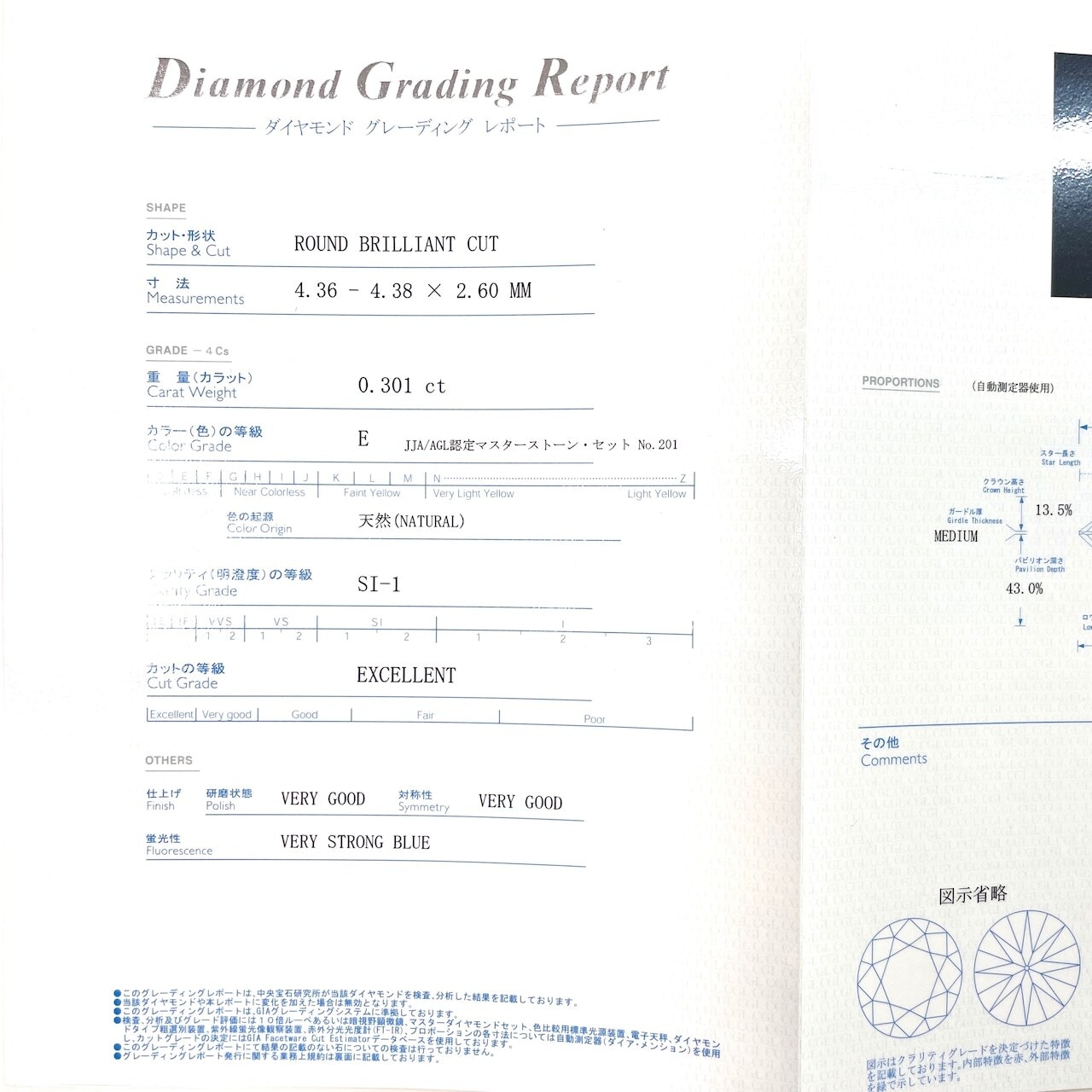 【CGL鑑別書】0.301ct E SI1 EX ラウンド ダイヤモンド ルース 裸石 天然 無傷 無色 透明 稀少 希少石 ダイアモンド 中央宝石研究所 ラウンドブリリアントダイヤモンド 中央宝石研究所鑑別書 婚約指輪 0.3カラット 4.3mm Round Brilliant Natural Diamond