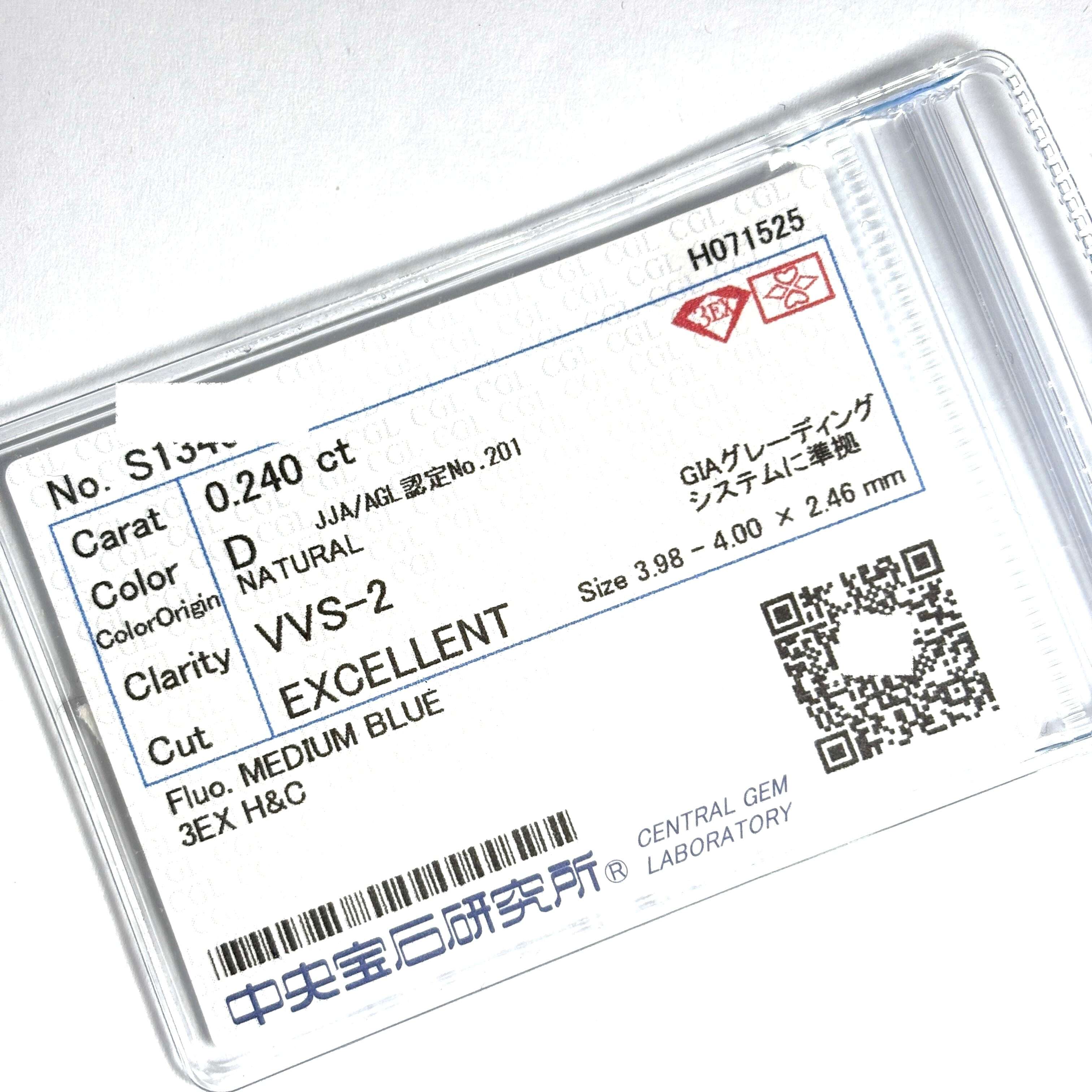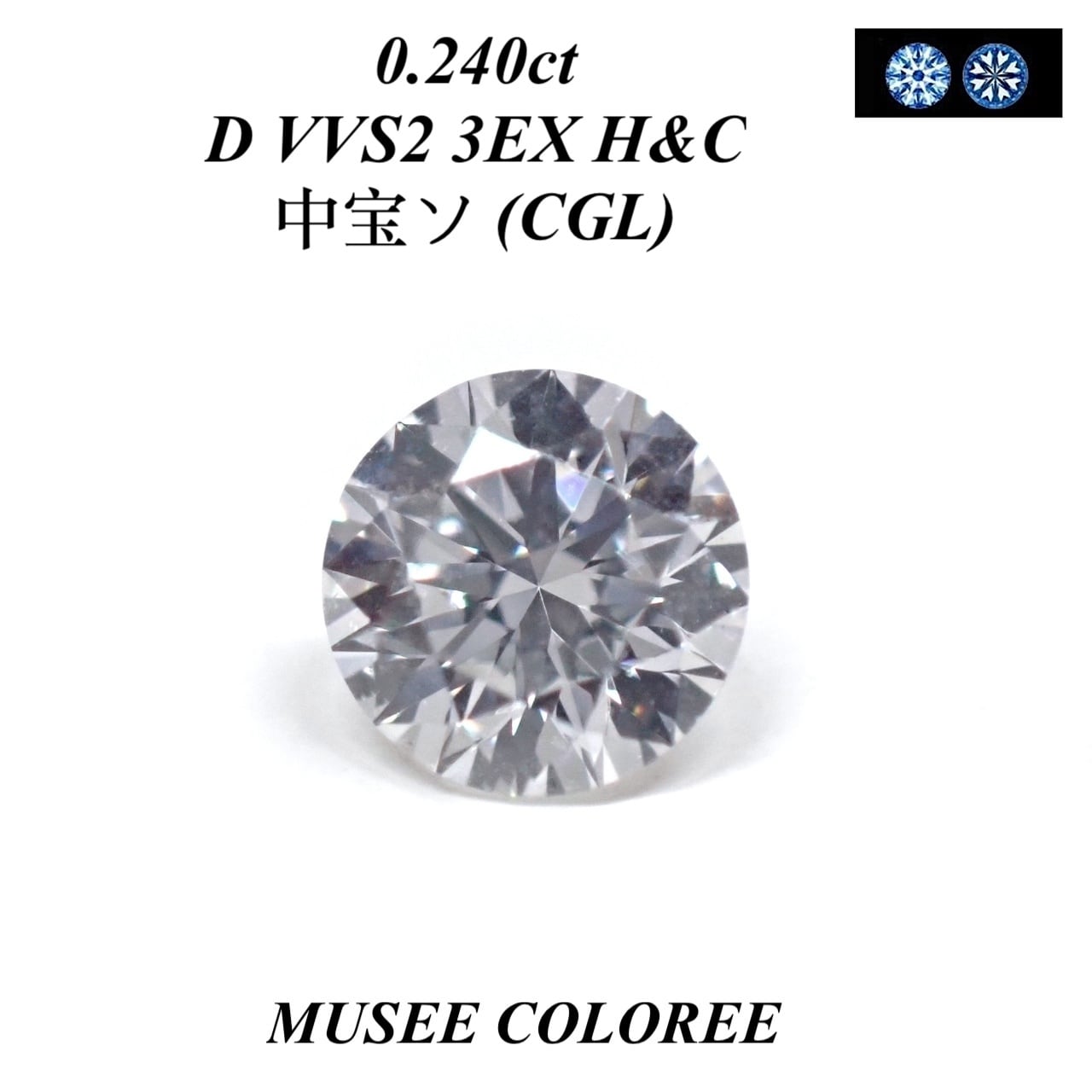 【特価】 0.240ct D VVS2 3EX H&C ラウンド ダイヤモンド ルース 裸石 天然 無傷 無色 透明 稀少 希少石 ダイアモンド 中央宝石研究所 ラウンドブリリアントダイヤモンド 中央宝石研究所 婚約指輪 0.2カラット 3.9mm Round Brilliant Natural Diamond