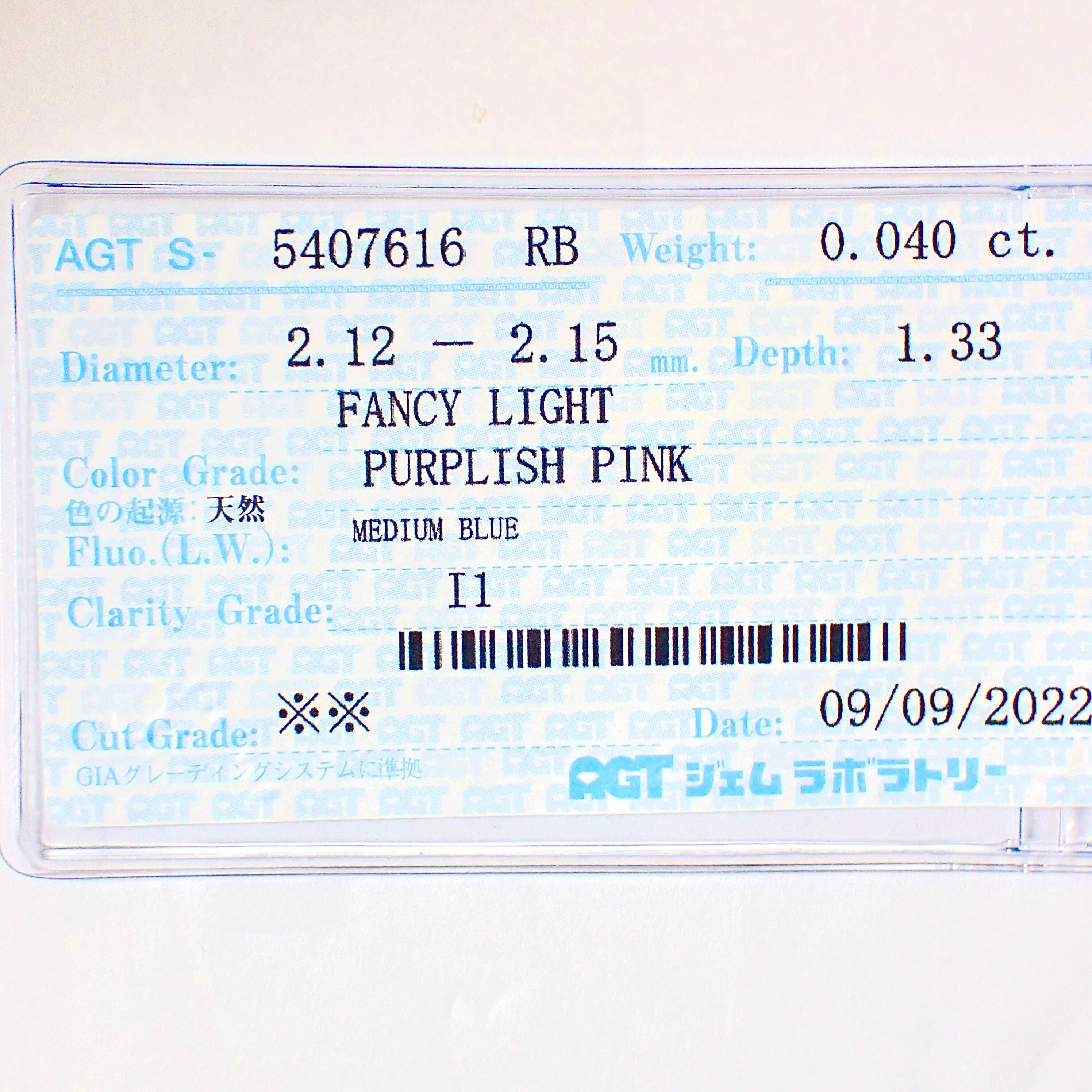 【人気商品】 Fancy Light Purplish Pink 0.040ct ダイヤ ダイヤモンド ルース 裸石 天然 AGTソーティング