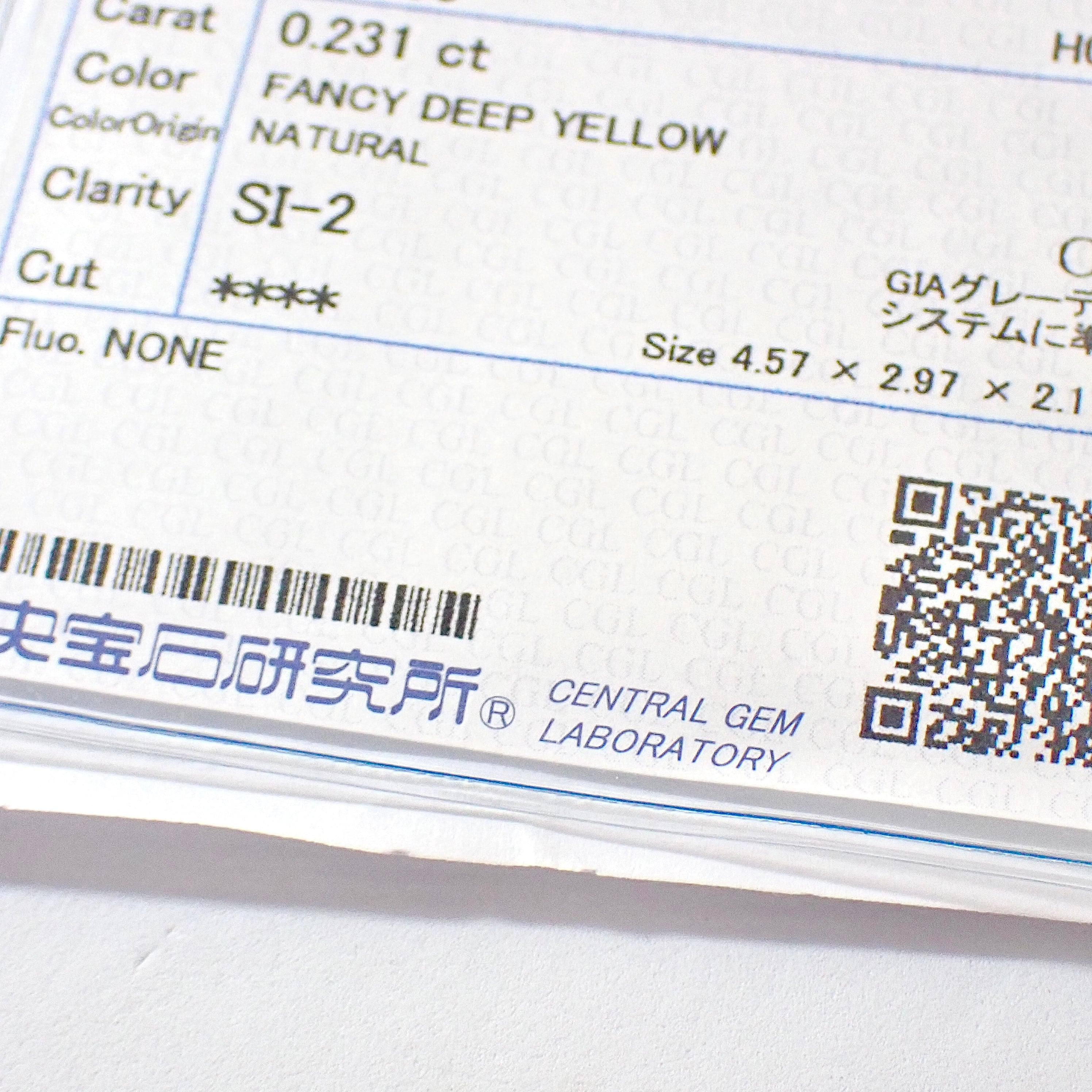 【希少】 Fancy Deep Yellow 0.231ct ファンシー ディープ イエロー ダイヤモンド ルース 裸石 中央宝石研究所ソーティング付き