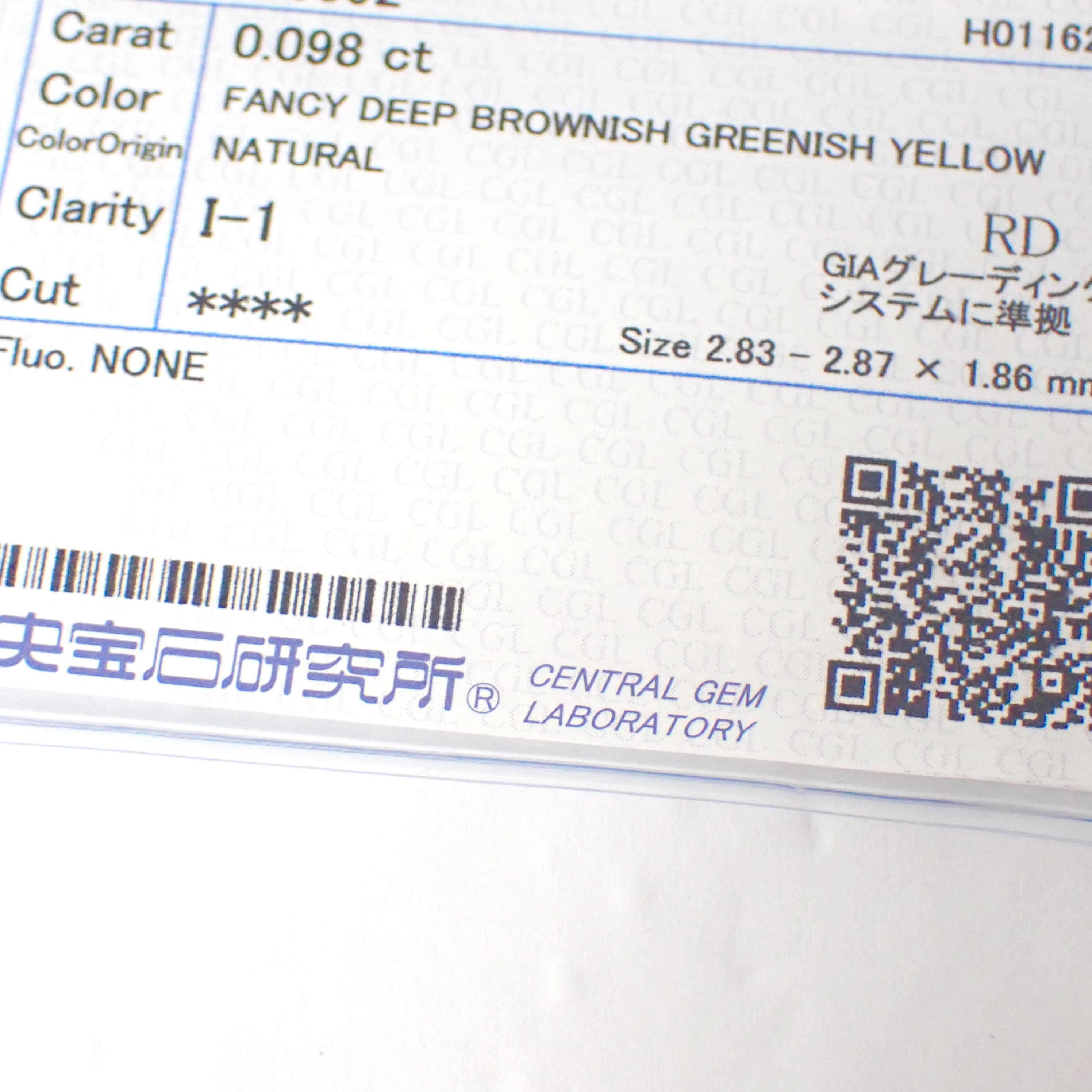Fancy Deep Brownish Greenish Yellow 0.098ct ファンシー ブラウン グリーン イエロー ダイヤモンド ルース 裸石 天然 中央宝石研究所ソーティング付き 2.83mm