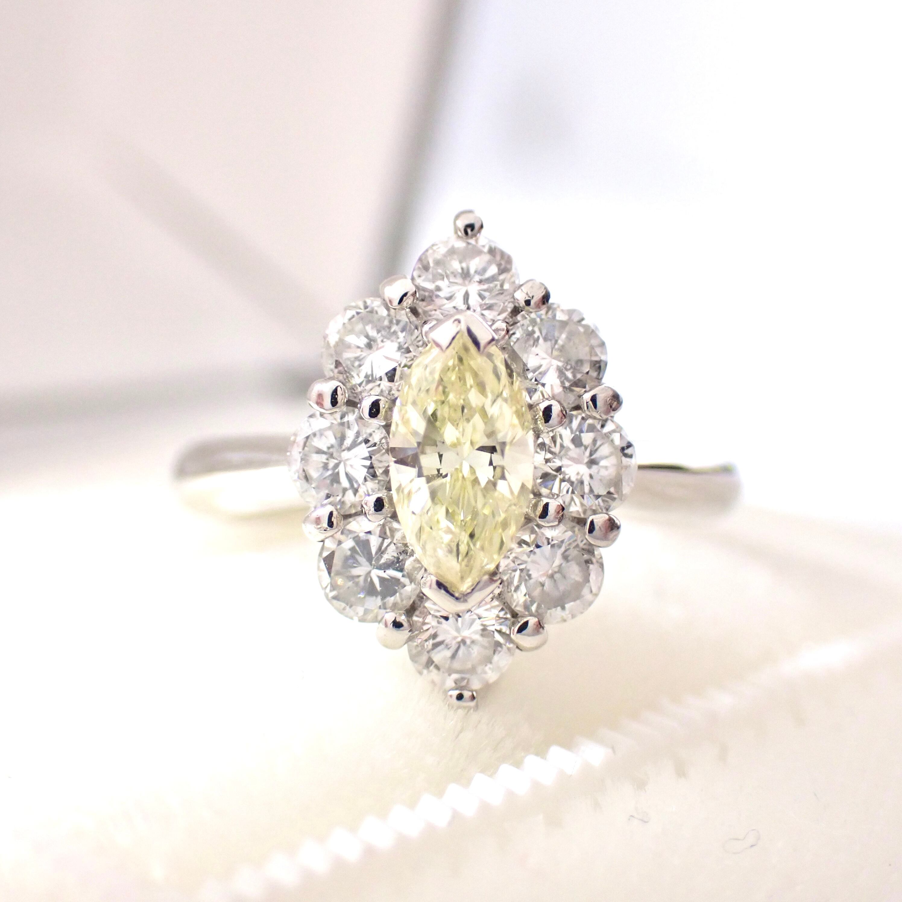 【 Made in Japan】プラチナ Pt 0.464ct Light Yellow マーキスカット ダイヤ リング 天然ダイヤモンド ダイヤモンドリング