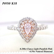 0.208ct Pear Shaped Fancy Light Purple Pink Diamond Ring ファンシーピンク ダイヤモンドリング