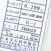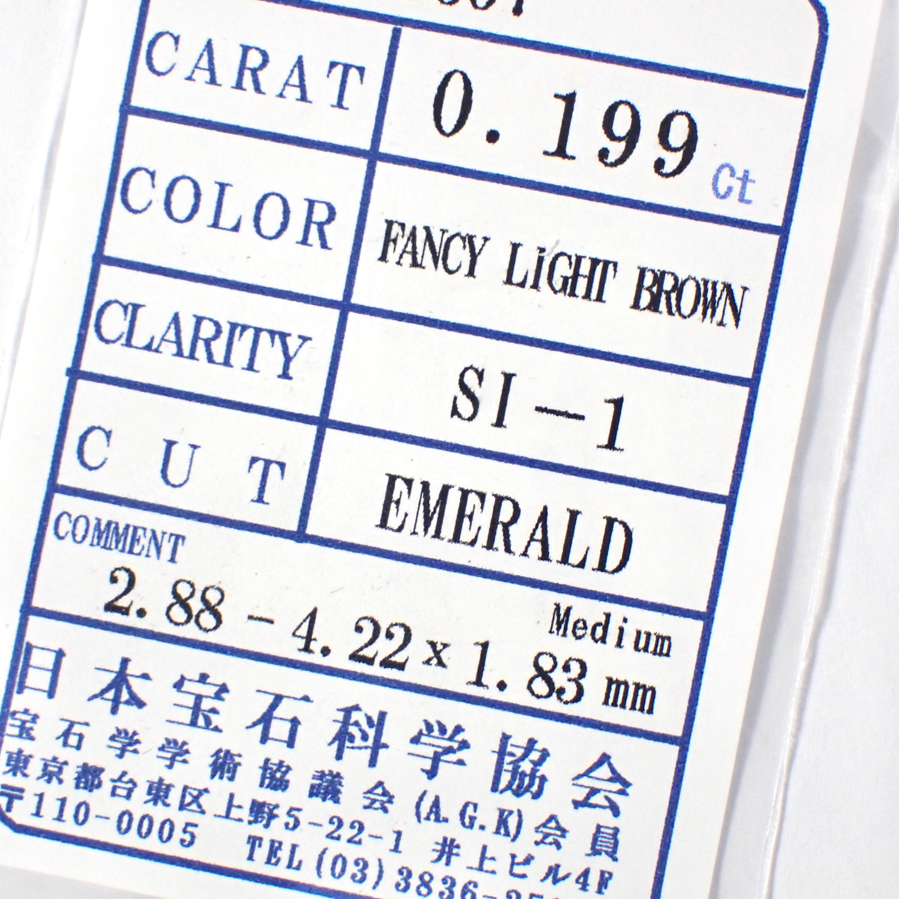 【希少】 Fancy Light Brown Emerald Cut Diamond 0.199ct ファンシー ライト ブラウン エメラルドカット ダイヤ ダイヤモンド ルース 裸石 天然 日本宝石科学協会ソーティング