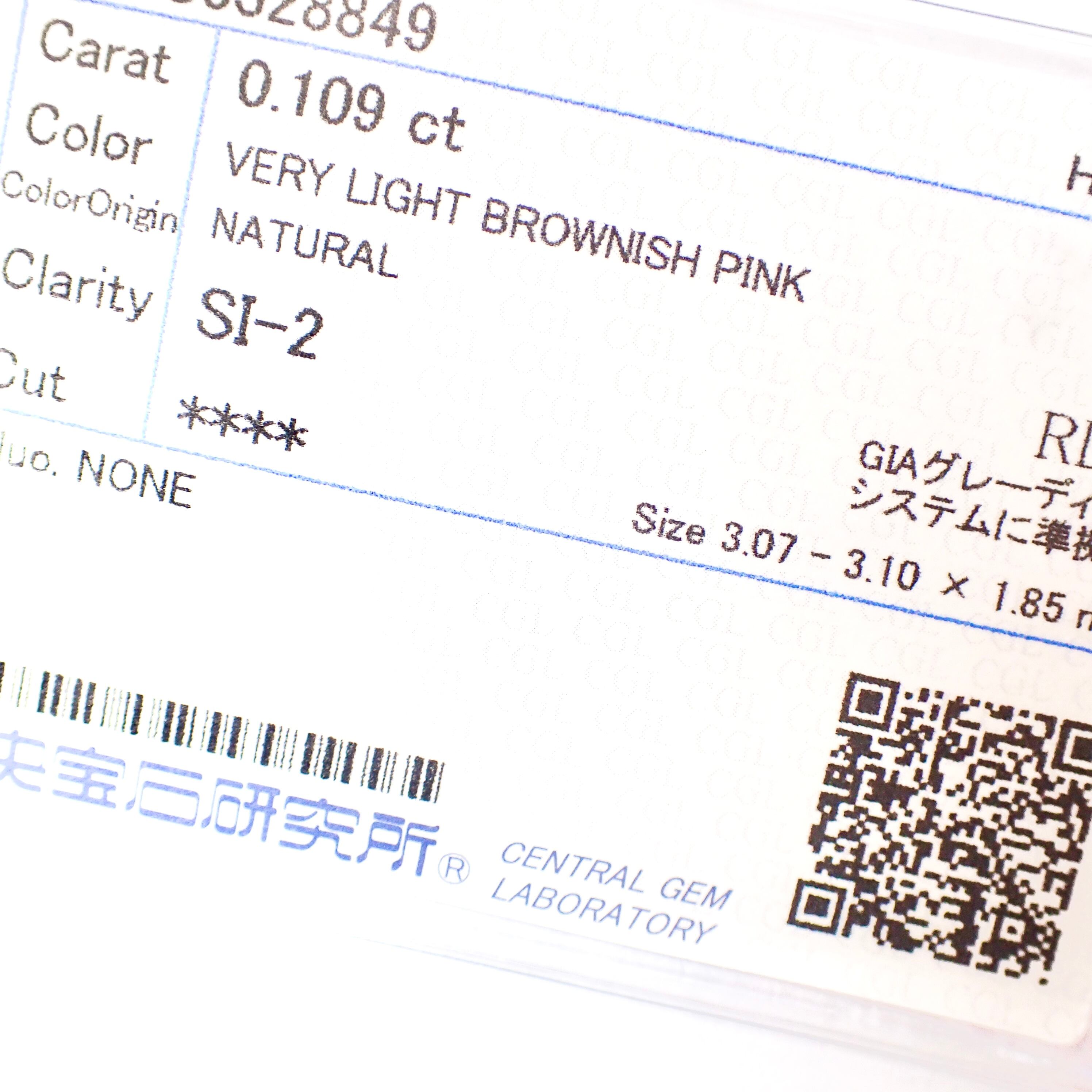 【売切れ御免】 Very Light Brownish Pink 0.109ct ピンクダイヤ ダイヤモンド ルース 裸石 天然 中央宝石研究所ソーティング 3mm