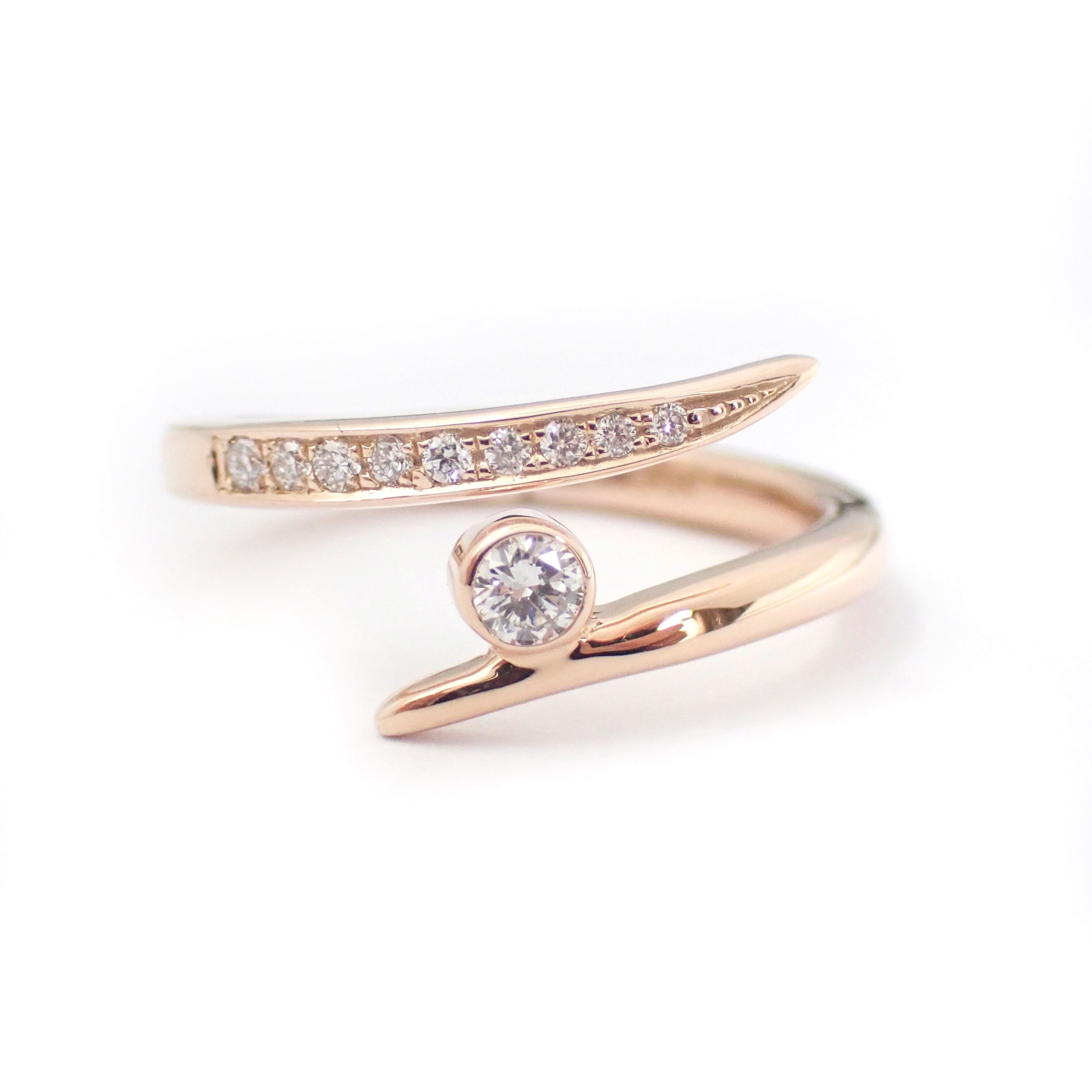 【新品 日本製】K18 PG 0.15ct ダイヤモンド リング 指輪 天然 フリーサイズ ファッションリング Free Size Natural Diamond Ring in Solid 18K Yellow Gold